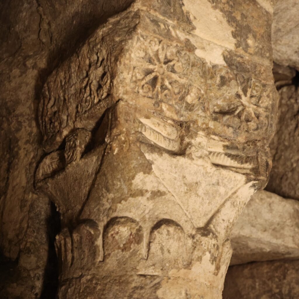 ここは大聖堂の心臓部である。おそらく西ゴート族の殉教者記念堂で、ローマ時代の遺跡の上に建てられた。ムスリム到来以前のパレンシア初代教区の建築的遺構であり、1035年にサンチョ3世によって修復された。伝説によれば、王がイノシシ狩りをしていた時に聖アントリンがここに現れたという。サンチョはここに復活した教区の最初の大聖堂を再建することを決め、その上にロマネスク様式の大聖堂が建てられ、さらにその上に現在のゴシック様式の大聖堂が築かれた。1400年以上にわたる複雑な歴史的過程の中で、建築要素が追加され、破壊され、置き換えられ、あるいは重なり合うことで、大聖堂の層が形成されたのである。