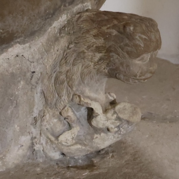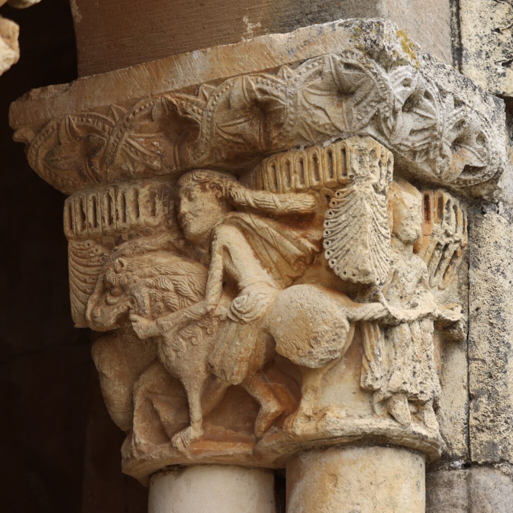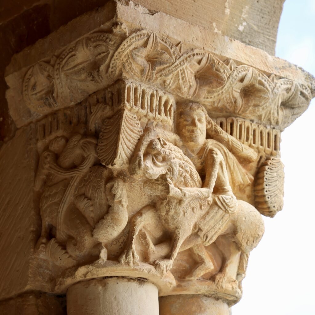 柱頭13には、「獅子を裂くサムソン」(『士師記』14章)が彫られています。