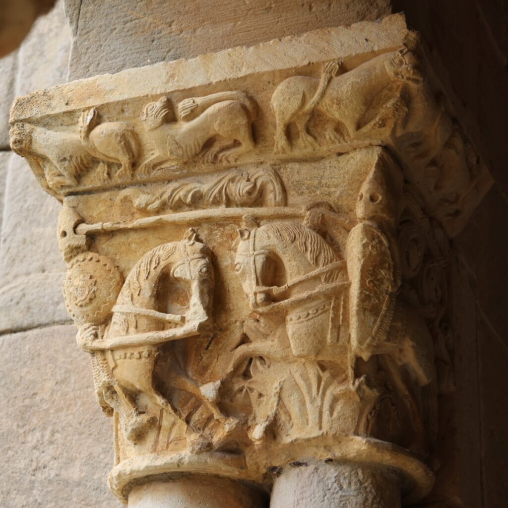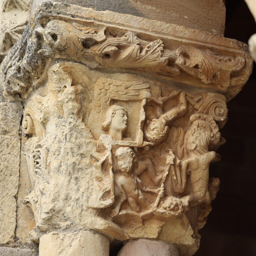 柱頭11は、幻想的な生き物と兵士が彫られていると思います。