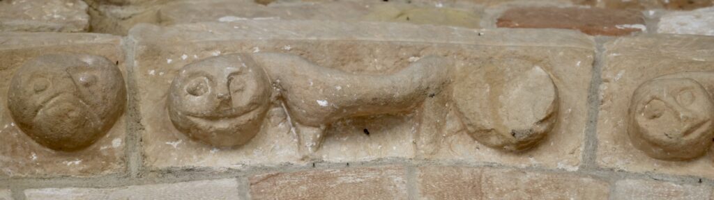 柱頭8は、怪物のような顔と植物が彫られています。柱頭の下には、溝に細かな装飾が刻まれた柱があります。