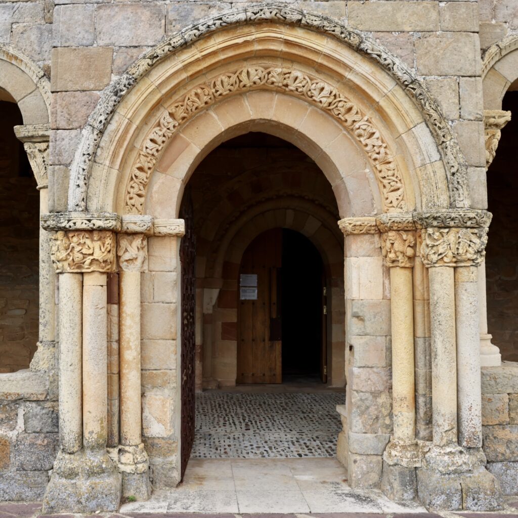 Iglesia de San Julián y Santa Basilisa。ポルティコは、カスティーリャ・ロマネスク建築の最も成功した、かつ最も保存状態の良い例のひとつです。そして、南扉口がかわいいです。