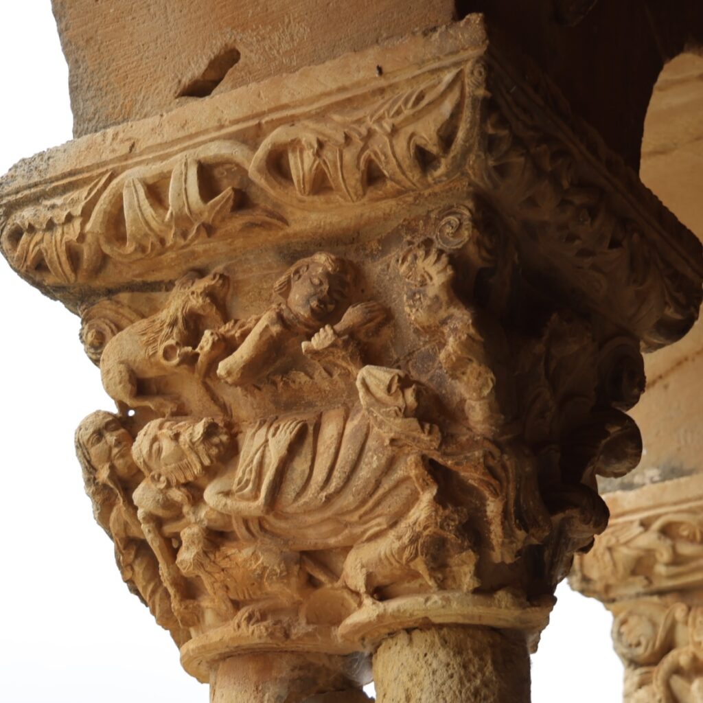 柱頭13には、「獅子を裂くサムソン」(『士師記』14章)が彫られています。