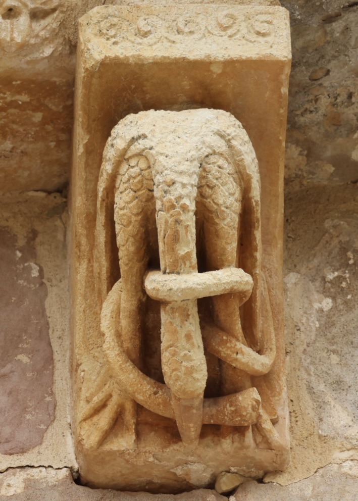 柱頭11は、幻想的な生き物と兵士が彫られていると思います。