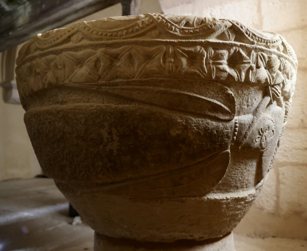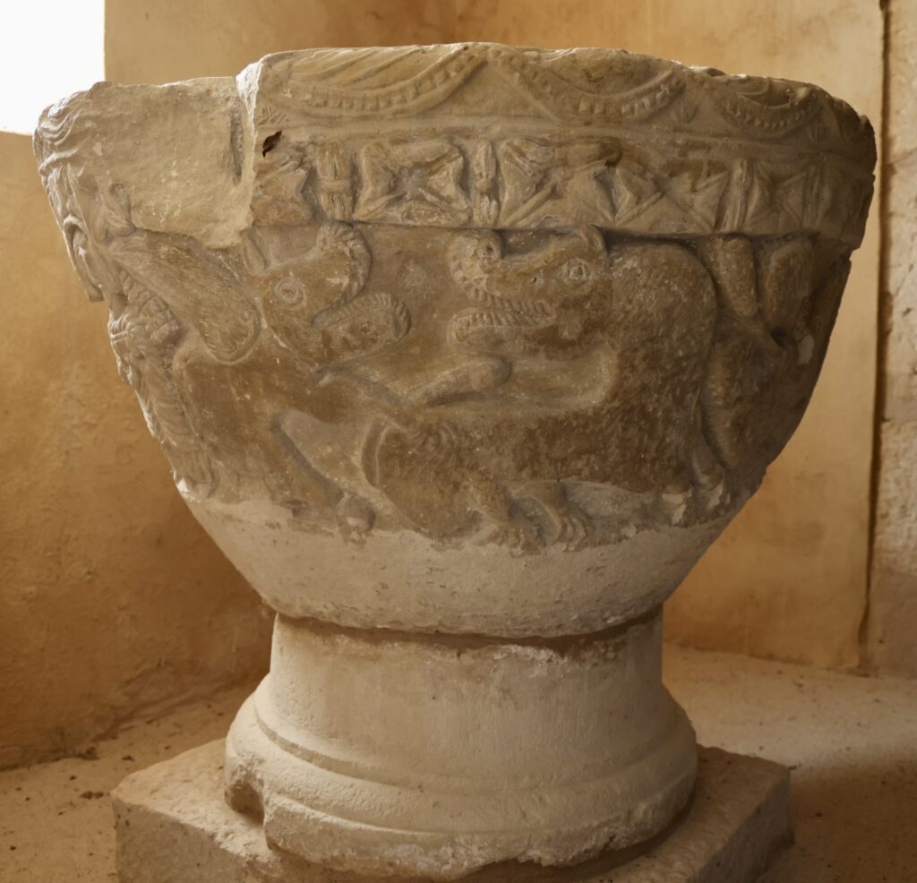 同様の場面が、同じ人数の人物像と共にカントラル・デ・ラ・ペーニャ(Cantoral de la Peña)の洗礼盤にも描かれているが、ここでは保持されている物体は書物のように見える。