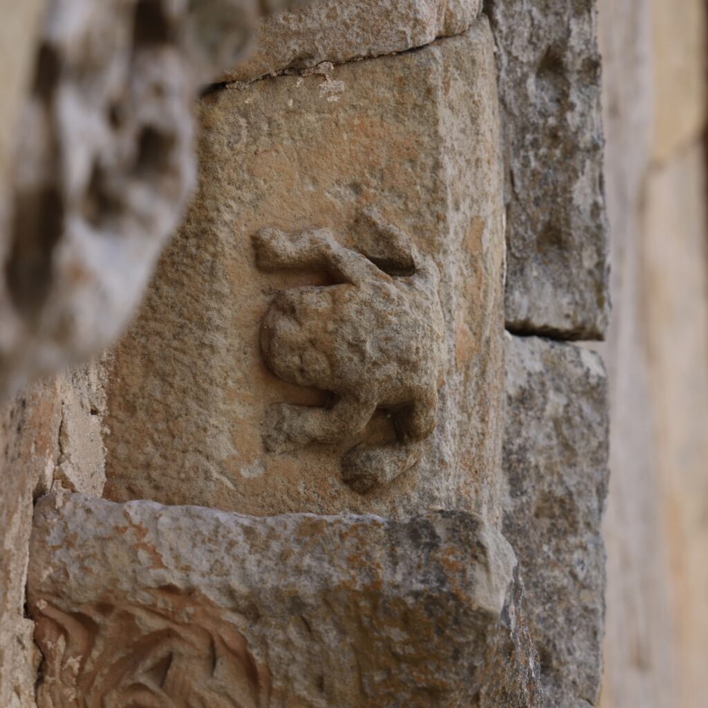柱頭が支えているアーチには、カエルが彫られています。
