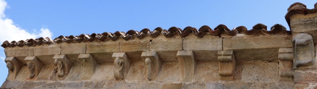Iglesia de Santiago Apóstol。勝利アーチ、後陣の持ち送りと窓の彫刻が良いです。