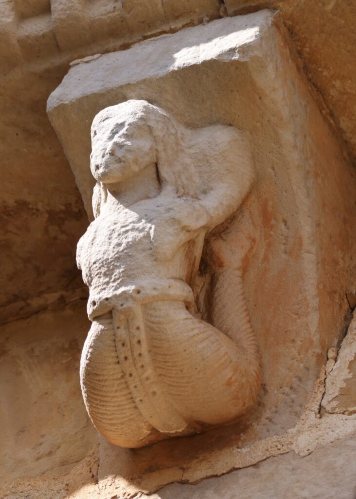 南側の持ち送りは、音楽家、踊り子、ライオン、蛇と女性、衣服の裾を持ち上げる男性、チュニックを着た男性、2匹の魚、弓矢を構える男性、鳥が彫られていると思います。