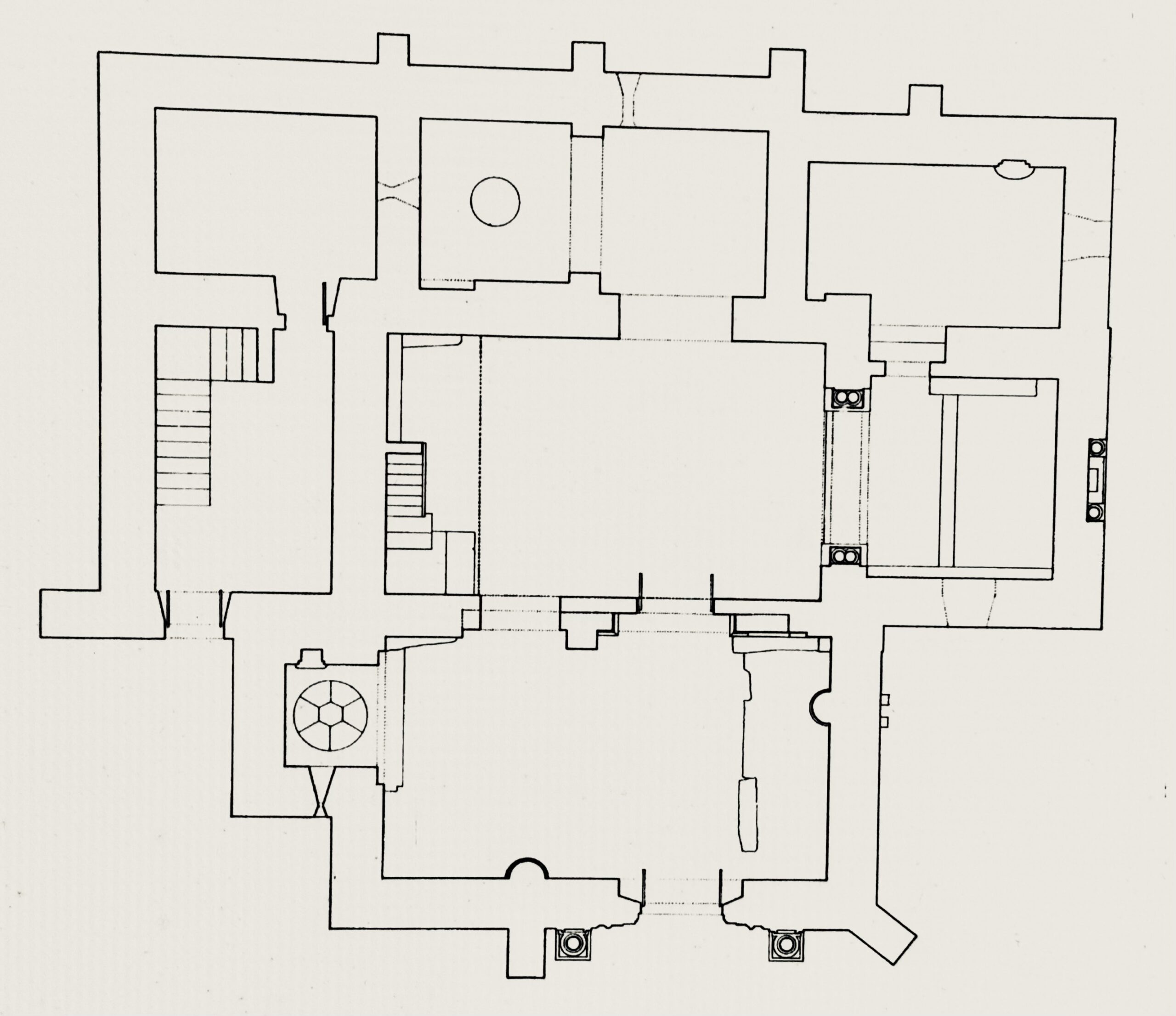 12世紀末に単身廊と四角形の後陣が建てられ、その直後に北側廊と第二の後陣(のちに聖具室へと改築)が建てられました。