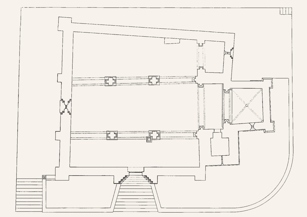 最も古い建築部分は12世紀のものだが、現存しているのは鐘楼と内陣のみである。建物の大部分は、13世紀に実施された拡張工事(尖頭アーチで区切られた三つの身廊への増改築)によるもので、南扉口も同時期に建てられた。一方、四角形の後陣は、半円形のロマネスク様式だった元のものを、16~17世紀頃に建て直したものである。