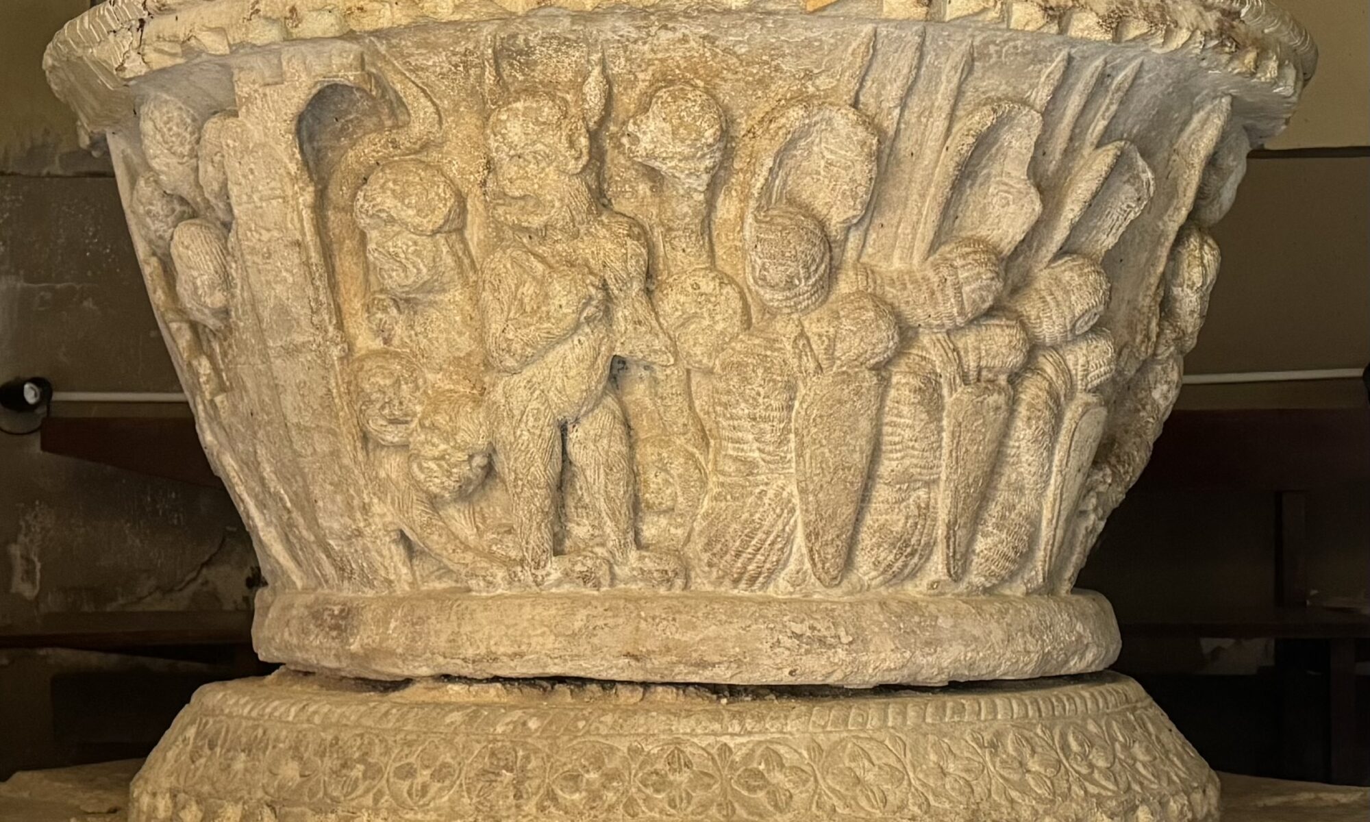ロマネスク様式の洗礼盤(12世紀)であり、パレンシア県内で最も興味深いもののひとつである。