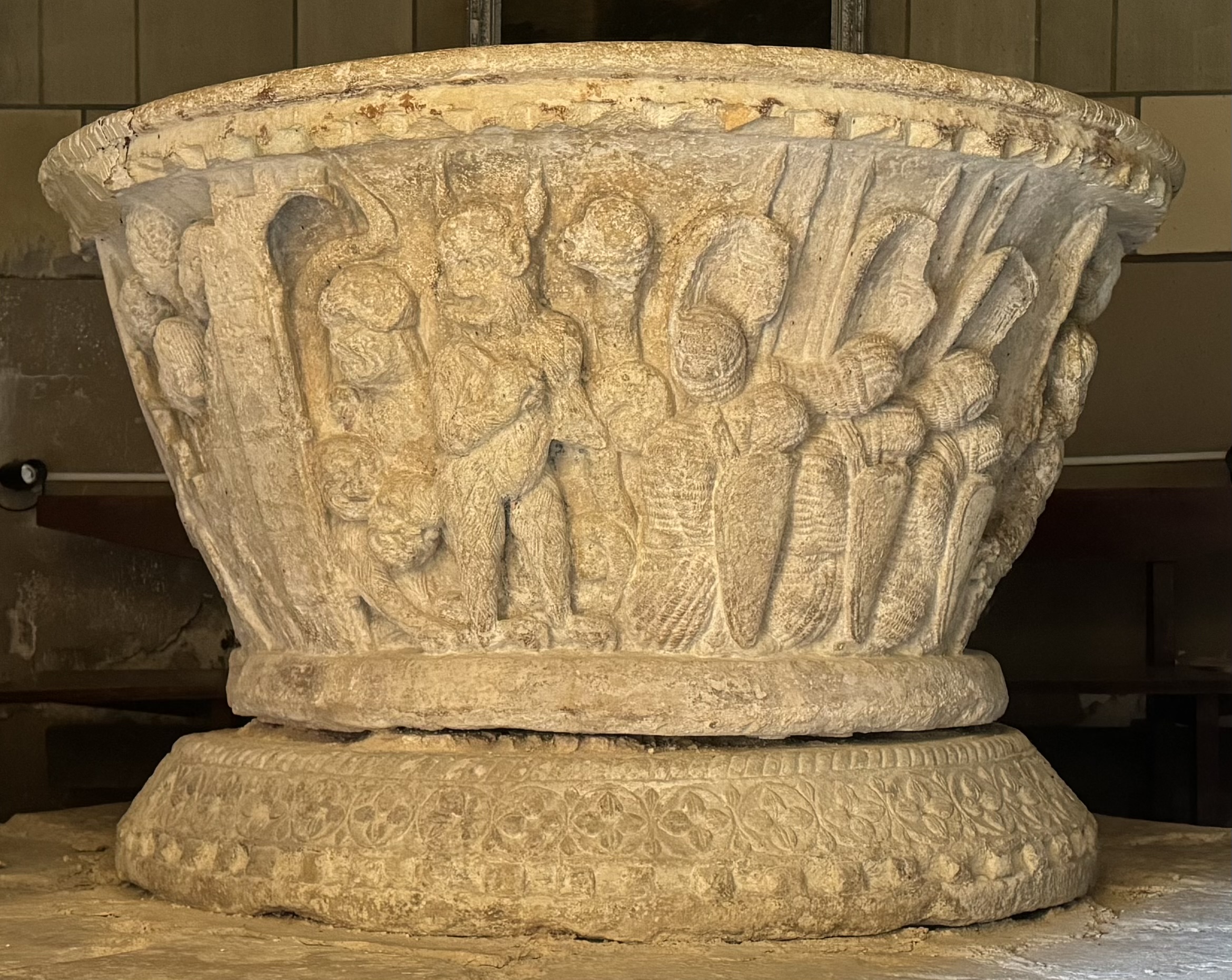 ロマネスク様式の洗礼盤(12世紀)であり、パレンシア県内で最も興味深いもののひとつである。