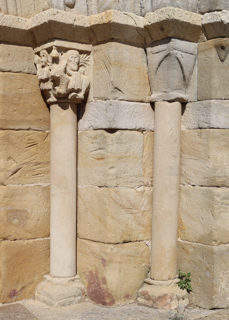 Iglesia de San Cosme y San Damián。南扉口に柱頭彫刻があります。