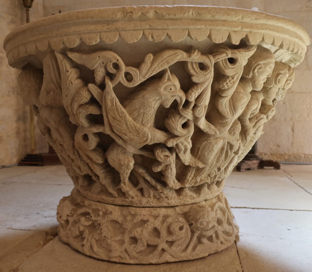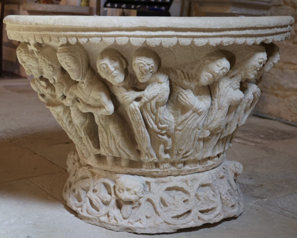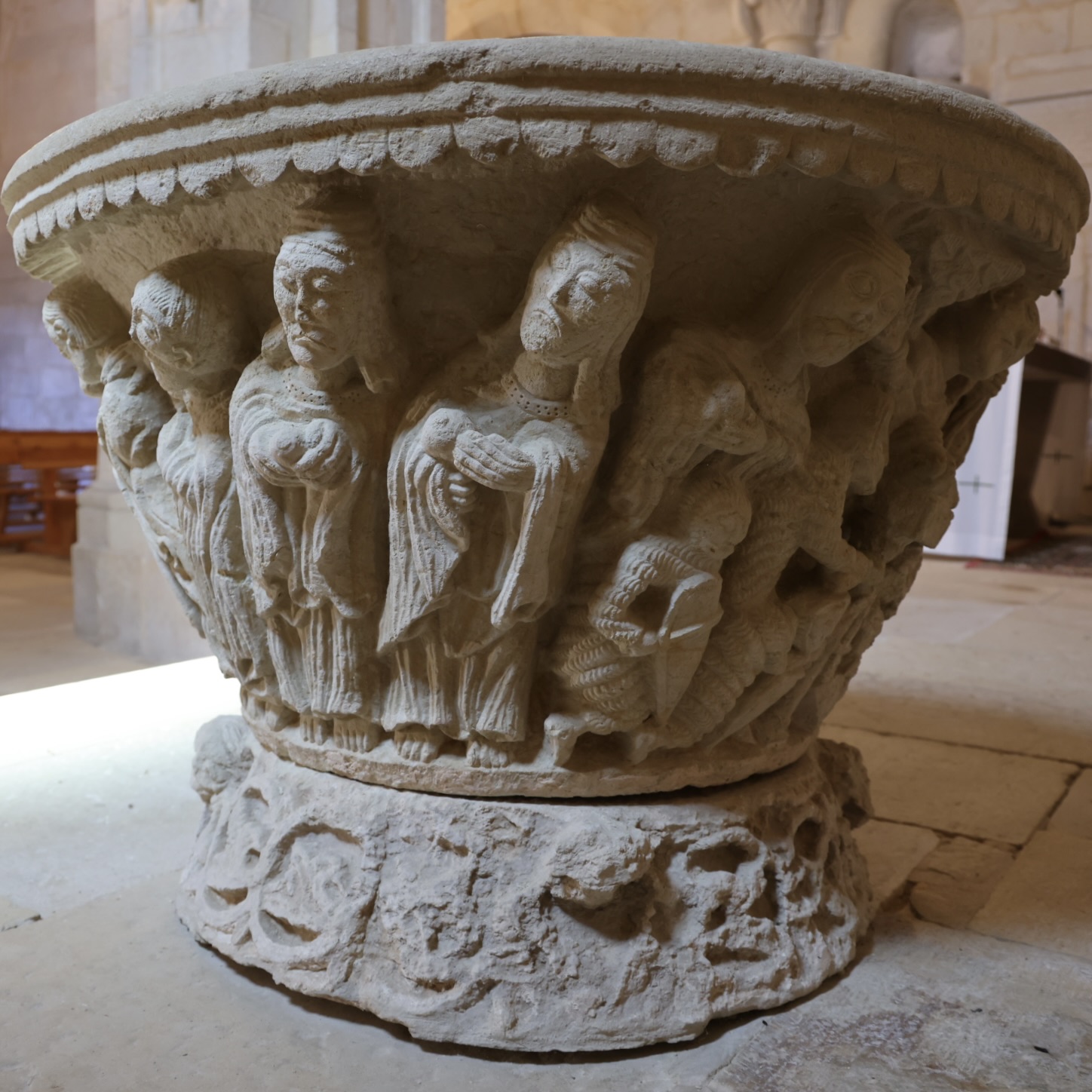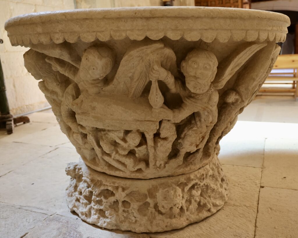 ここは、その洗礼盤が、この地方で最も興味深い後期ロマネスク様式の作品のひとつです。