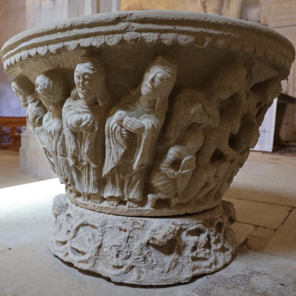 Iglesia de San Fructuoso。その洗礼盤は、この地方で最も興味深い後期ロマネスク様式の作品のひとつです。