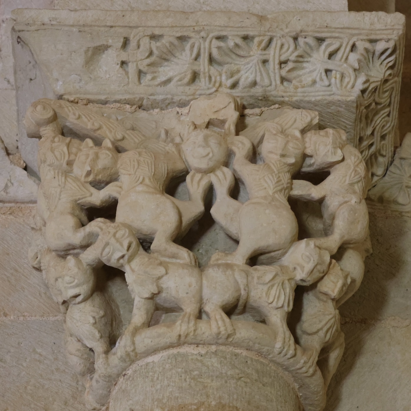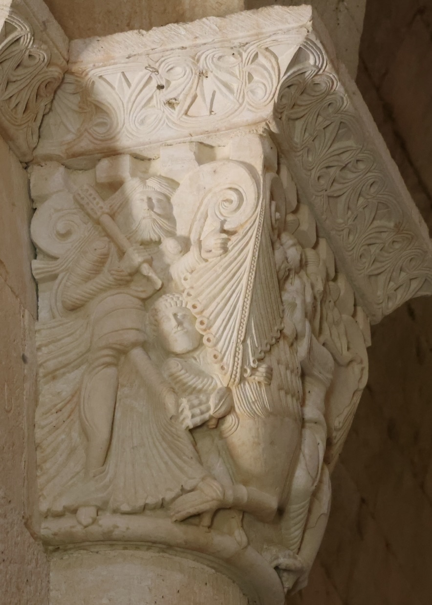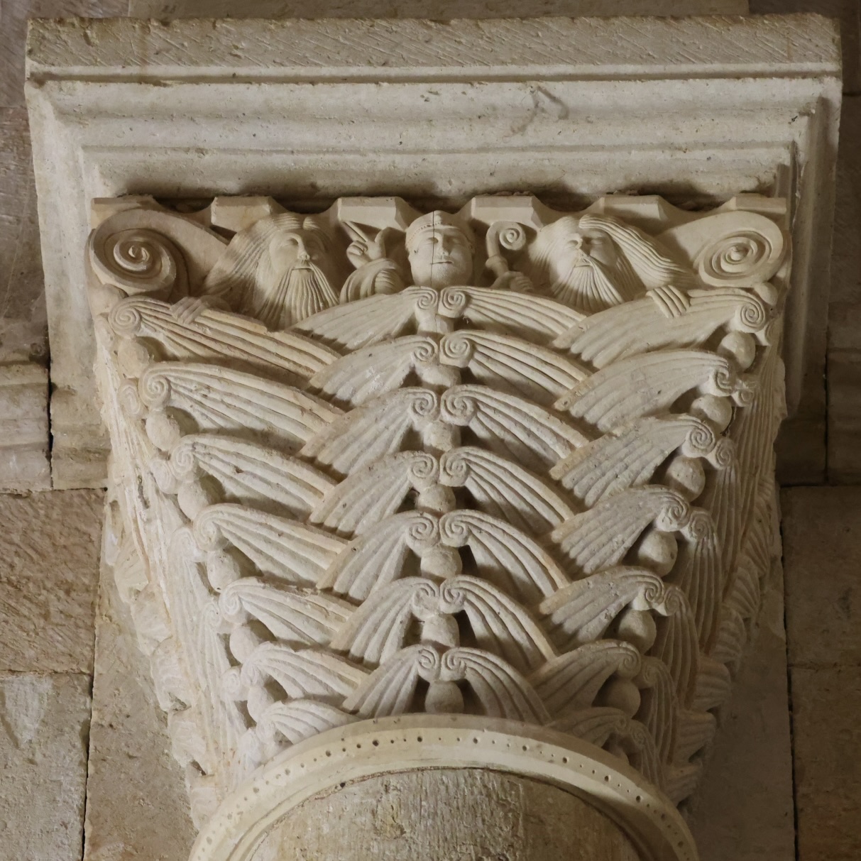 ロマネスク建築の第2段階の彫刻は、ラピダリウムにも残されています。失われた回廊にあった柱頭です。