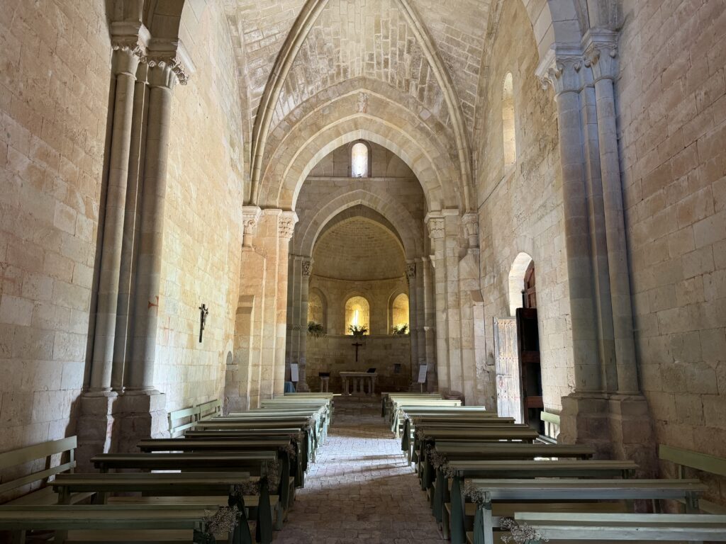 この教会は、この地に最初の修道院が設立されて以来、修道院生活の中心であり、建物には、現存しない10世紀のプレ・ロマネスク様式の最初の建物の遺構の一部が含まれている。