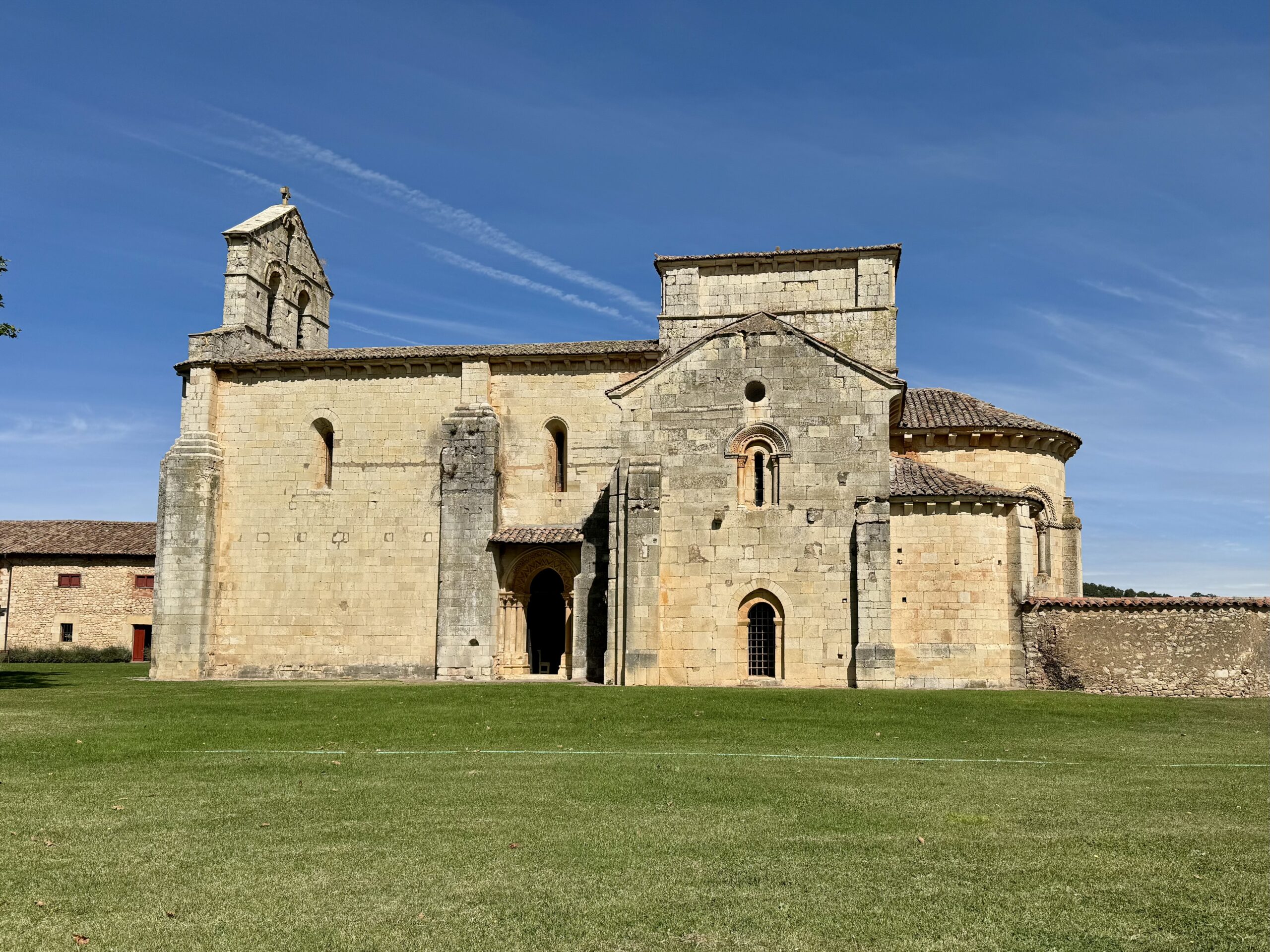 1100年、カスティーリャ王アルフォンソ6世が、すべての領地をブルゴス司教に譲渡することを決定した。この頃、この修道院の領地は拡大し、収入も増加していた。そのため、既存の教会よりも大きく、より重要で、より収容力のある新しい教会の建設という大工事を行うことが可能になった。新教会の後陣部分が完成し、そこで祝祭が行えるようになった時点で、ロマネスク以前の教会は取り壊された。新教会のロマネスク建築の第1段階は、12世紀初頭のことであり、現在の主祭室を構成する三つの後陣を建立した。サンティアゴ巡礼路やカンタブリアのロマネスクから建築や彫刻の影響を受け、職人たちがチームを組んで取り組んだ。