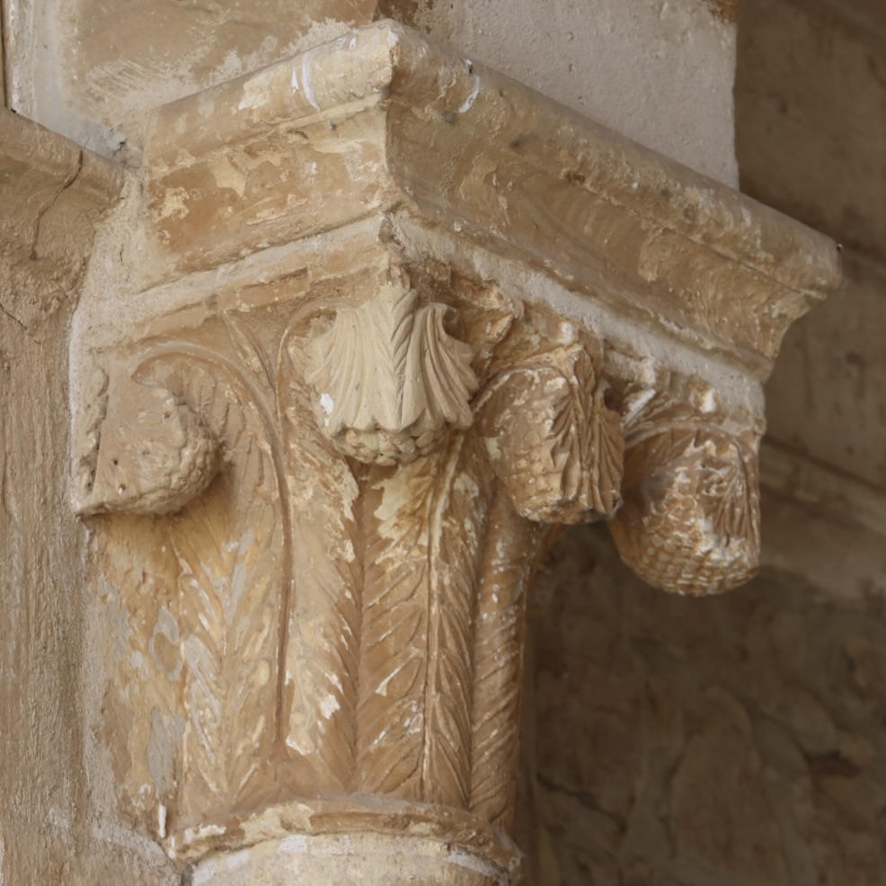 彫刻装飾は、扉口とその柱頭に集中している。これらが、サン・アンドレス・デ・アロヨ(San Andrés de Arroyo)のシトー会修道院のよく知られた植物彫刻と正確に関連していることから、当初の建築は13世紀第1四半期頃と推定される。