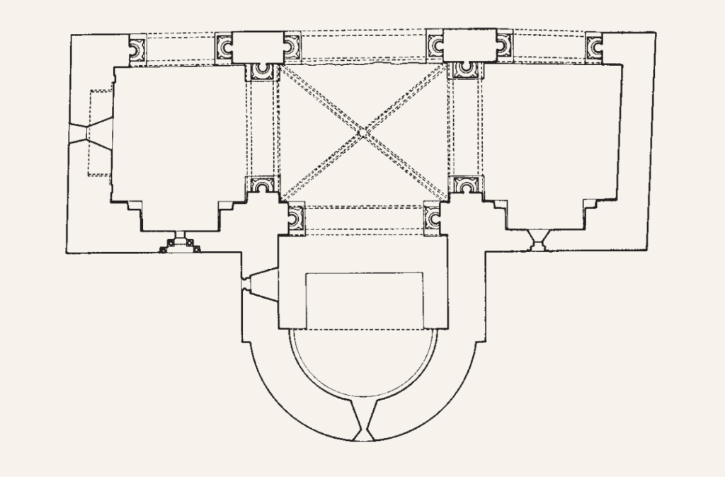 南北の小後陣に窓がありますが、サンタ・セシリア教会(Iglesia de Santa Cecilia)で見たような、ゴシック様式に近いものです。