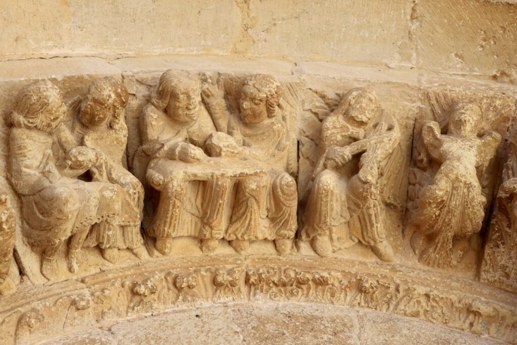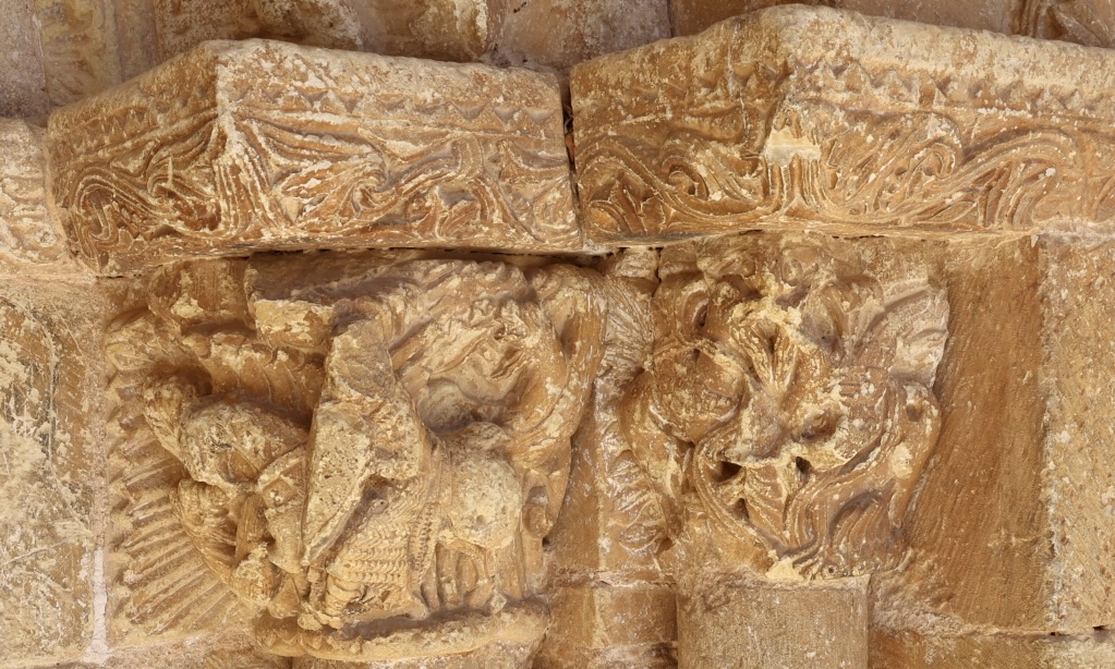 サンティアゴ・デ・カリオン(Santiago de Carrión)の扉口、レビージャ・デ・サントゥジャン(Revilla de Santullán)の扉口、モアルベス(Moarves)の扉口、バジェスピノソ・デ・アギラル(Vallespinoso de Aguilar)の持ち送りや内部の柱頭、レボジェド・デ・ラ・トレ(Rebolledo de la Torre)の持ち送り、などを思い出します。