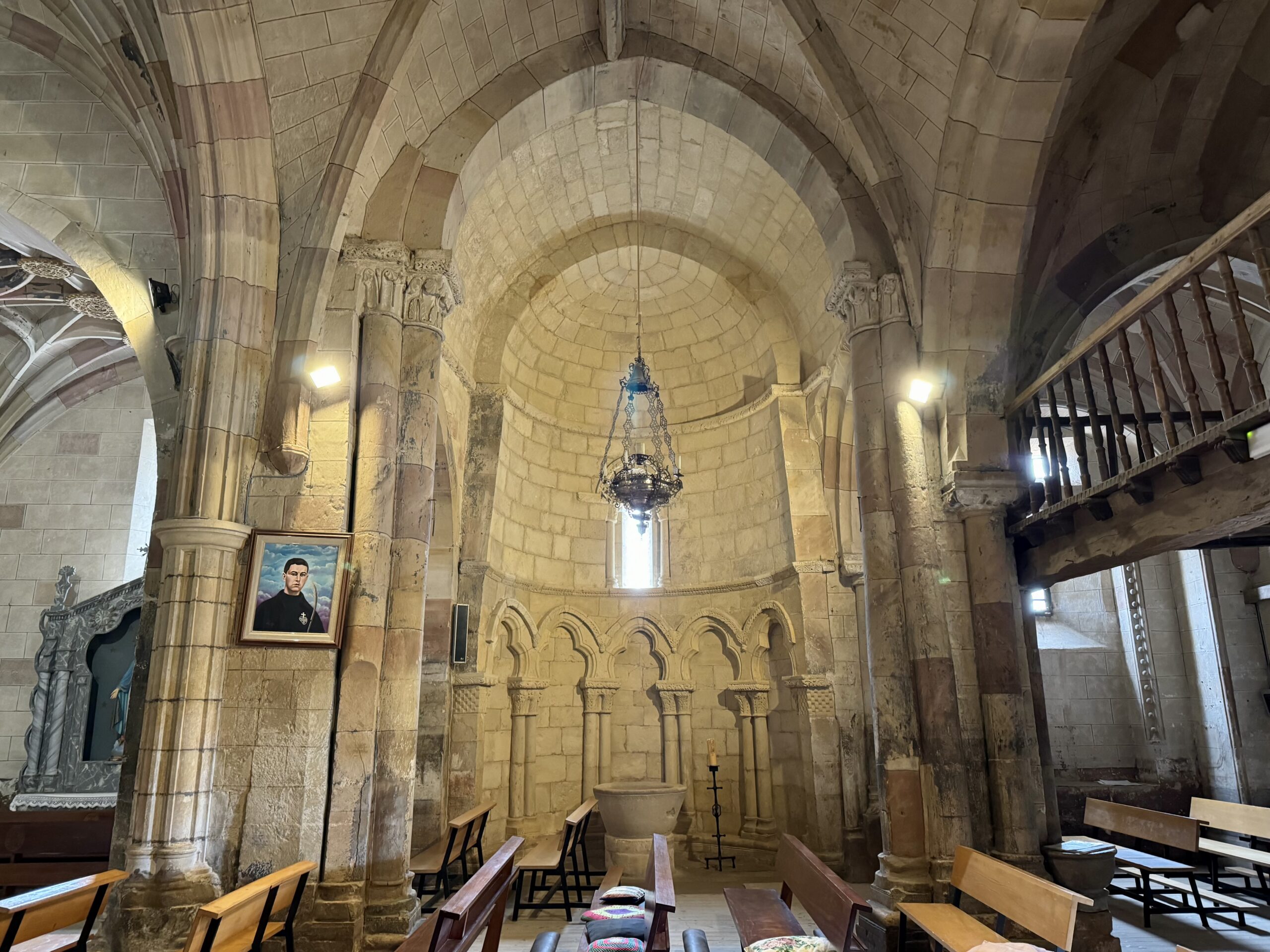 洗礼盤のところに、ロマネスク様式の後陣があります。