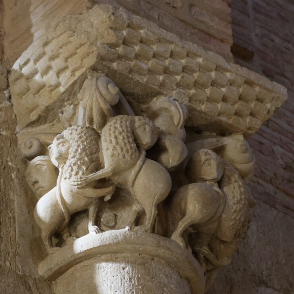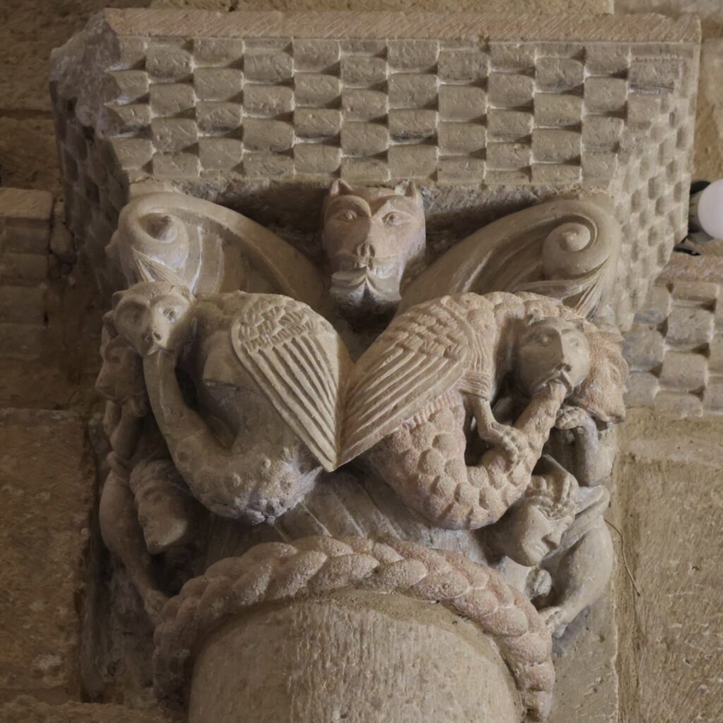 ここは、教会内の柱頭彫刻が素晴らしいです。