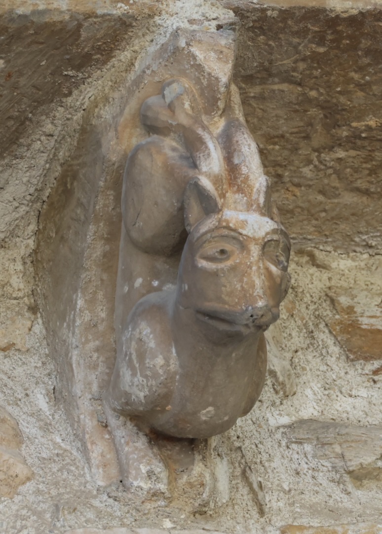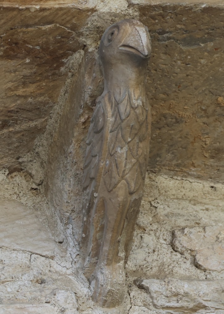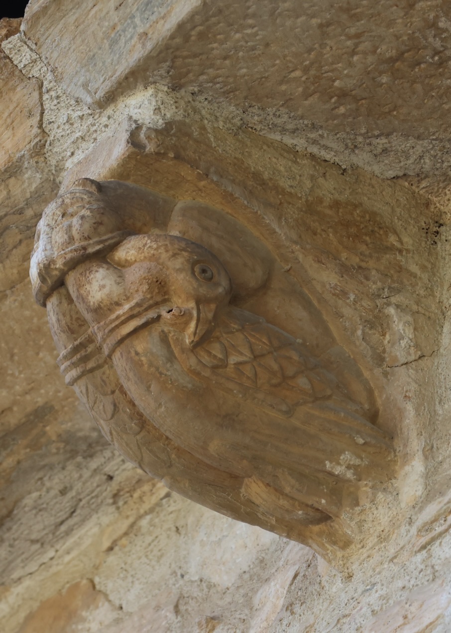 左(北)側の柱頭には、絡み合うブドウ、向かい合って同じ杯から飲む2羽の鳥が彫られていると思います。