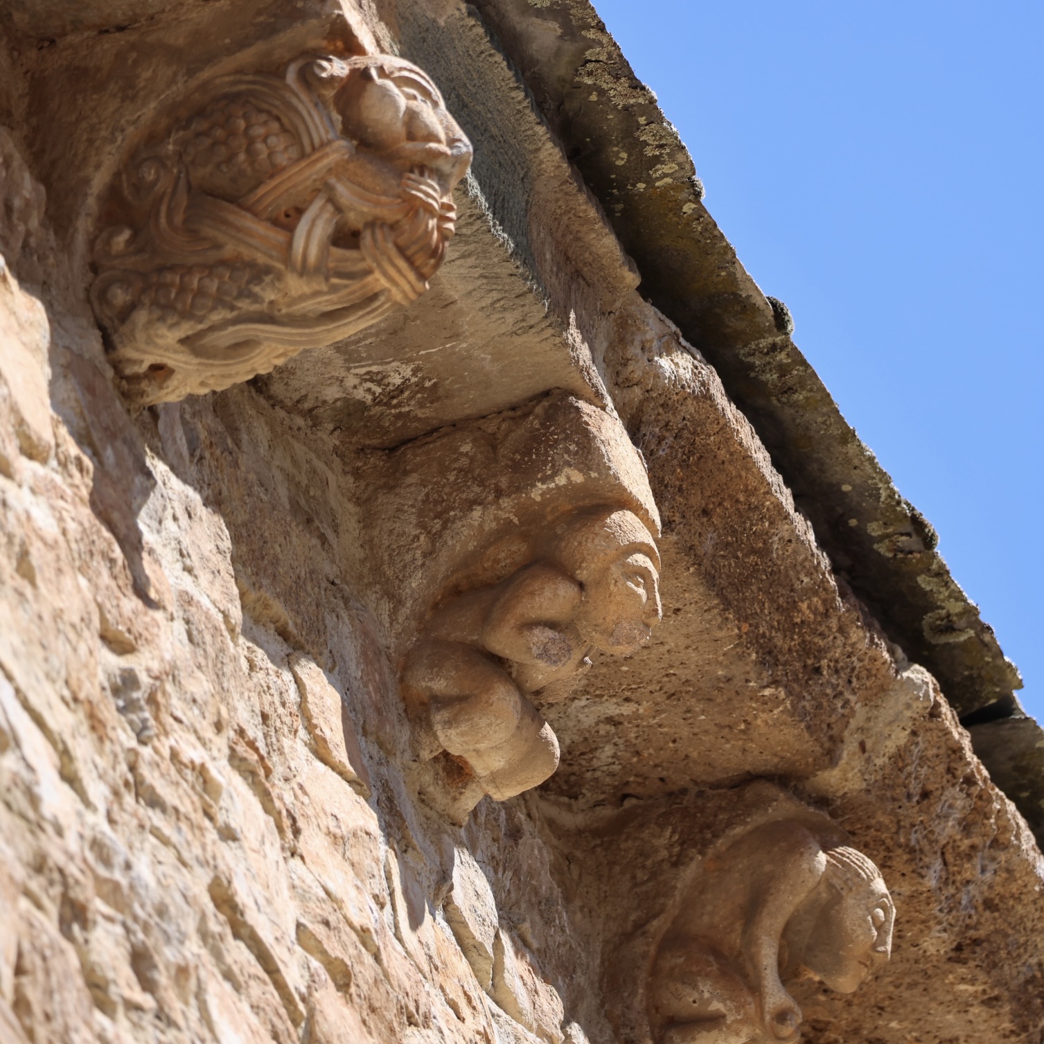 ここは、レオン地方のロマネスク様式を代表する建物です。鐘楼ポーチ、西扉口と身廊の持ち送りに注目です。