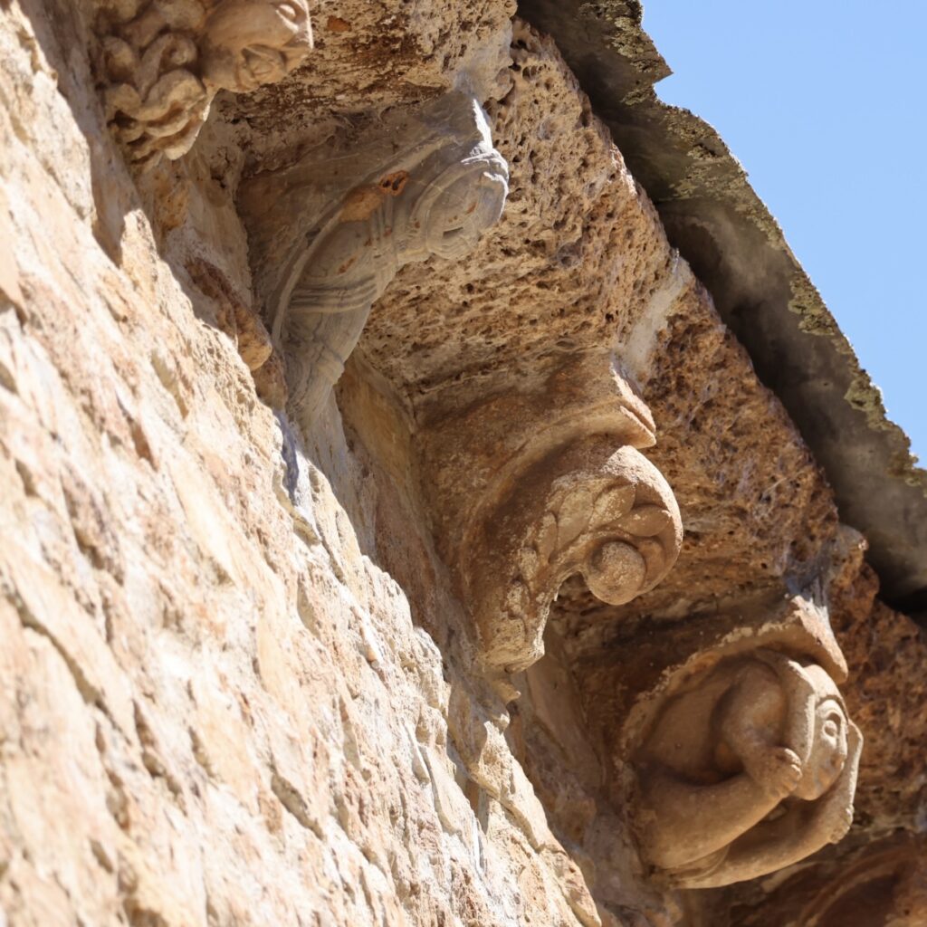 Iglesia de San Esteban。レオン地方のロマネスク様式を代表する建物です。鐘楼ポーチ、西扉口と身廊の持ち送りに注目です。