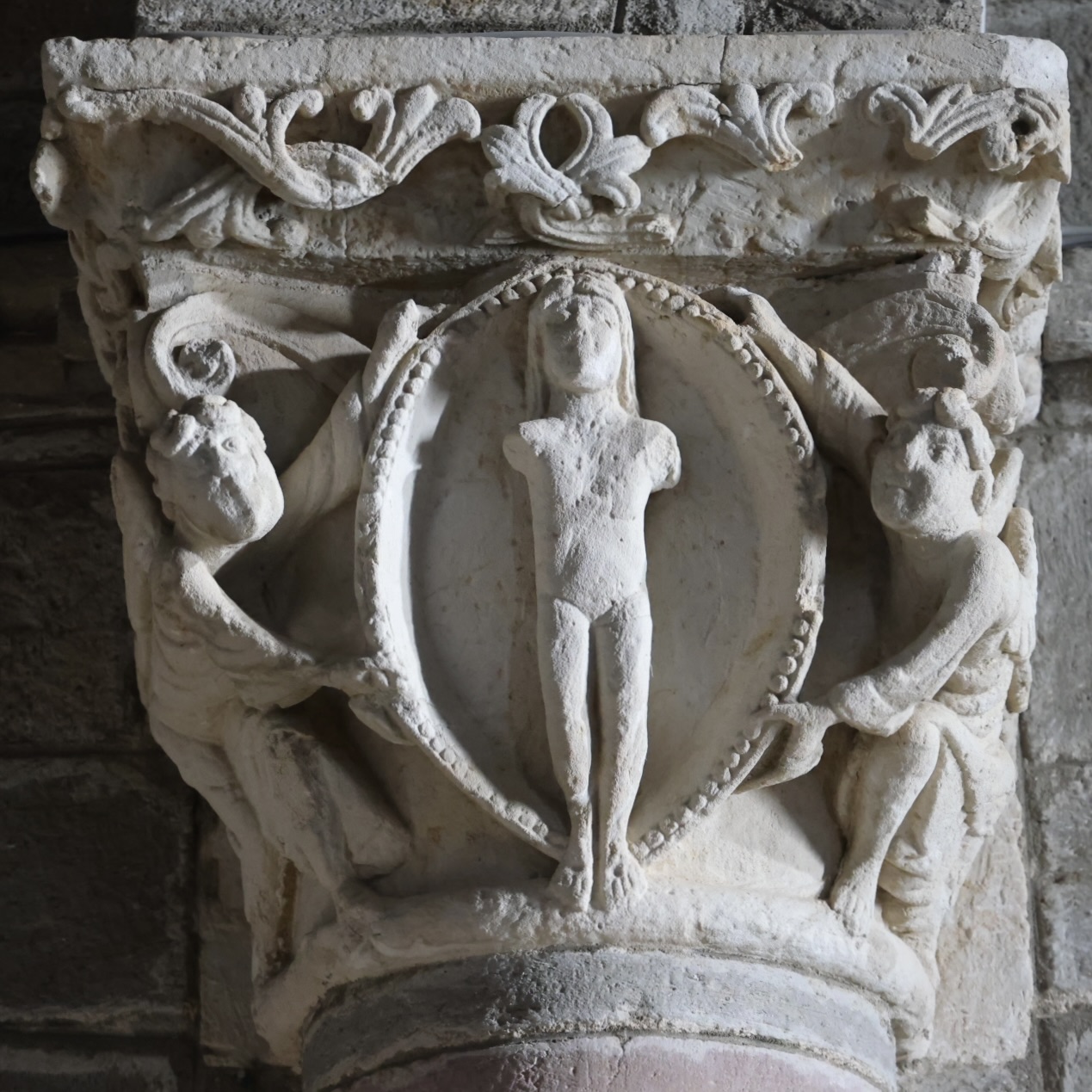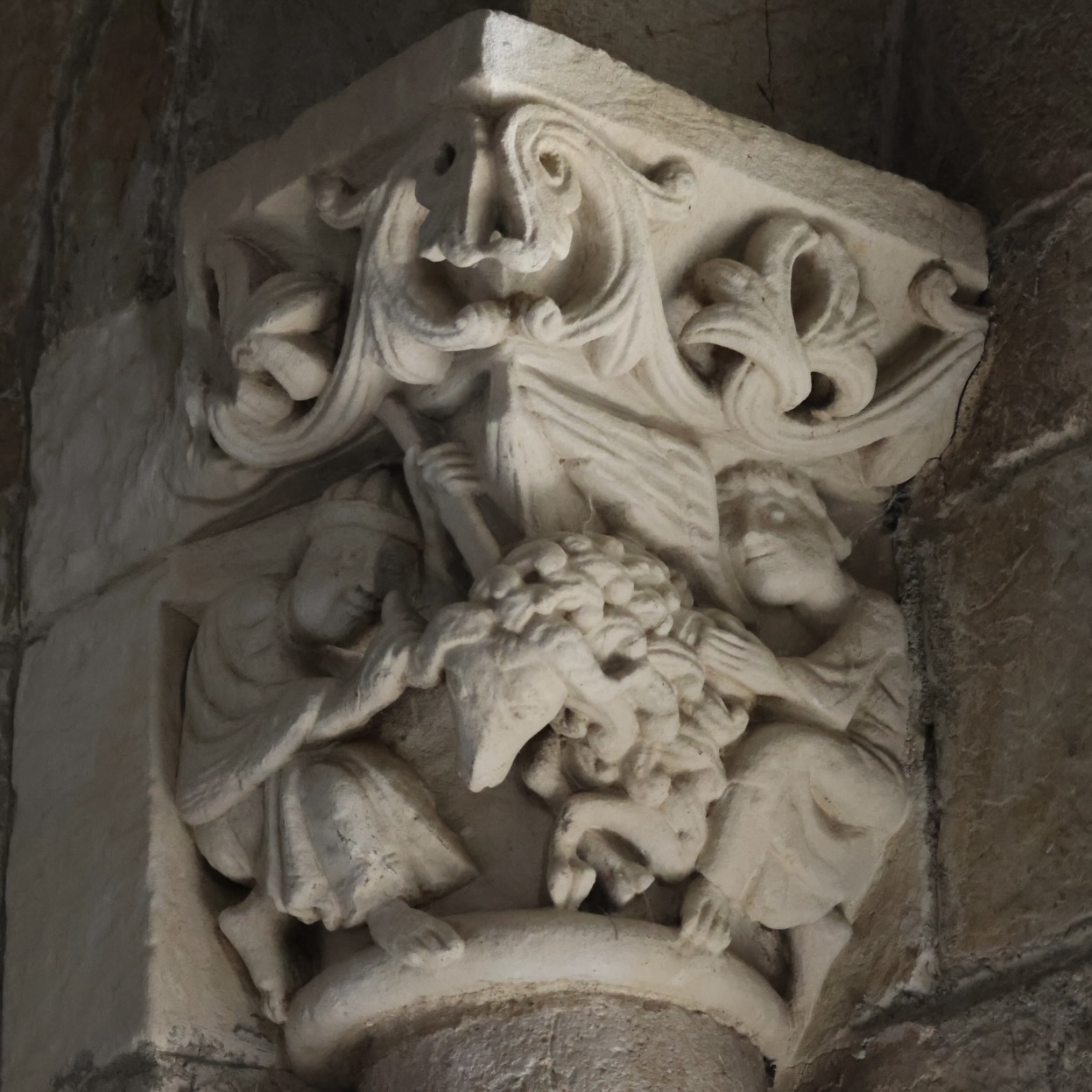 旧約聖書の場面を思わせる柱頭が二つあります。