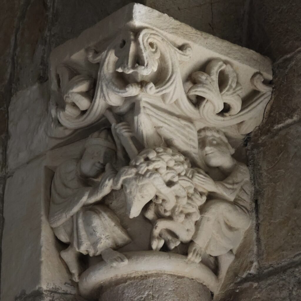 数多くの柱頭には、少なくとも1人の卓越した親方の手が認められます。代表作は、勝利アーチの柱頭です。