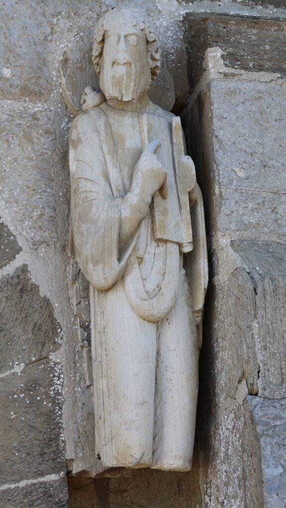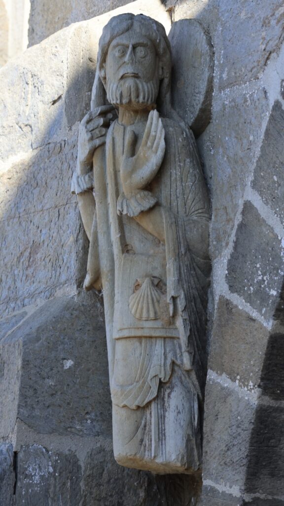 教会の中にあった掲示によると、巡礼者の姿をした聖ヤコブ像としては最古のもので、11世紀の作品とされています。