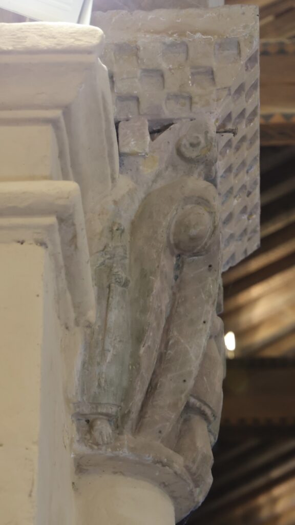 左(西)側の柱頭には、2体の二股人魚、2体のハルピュイア、が彫られていると思います。