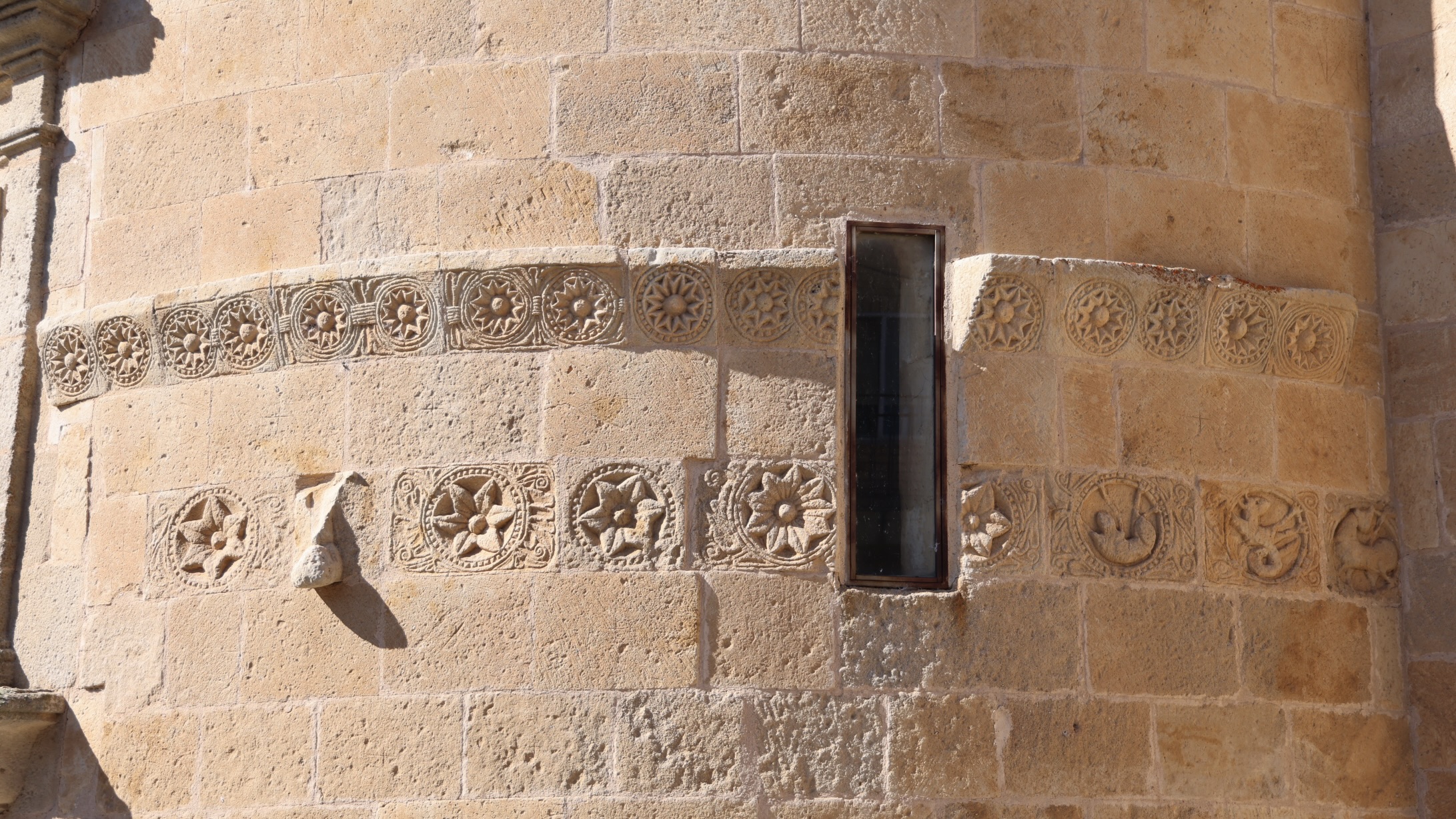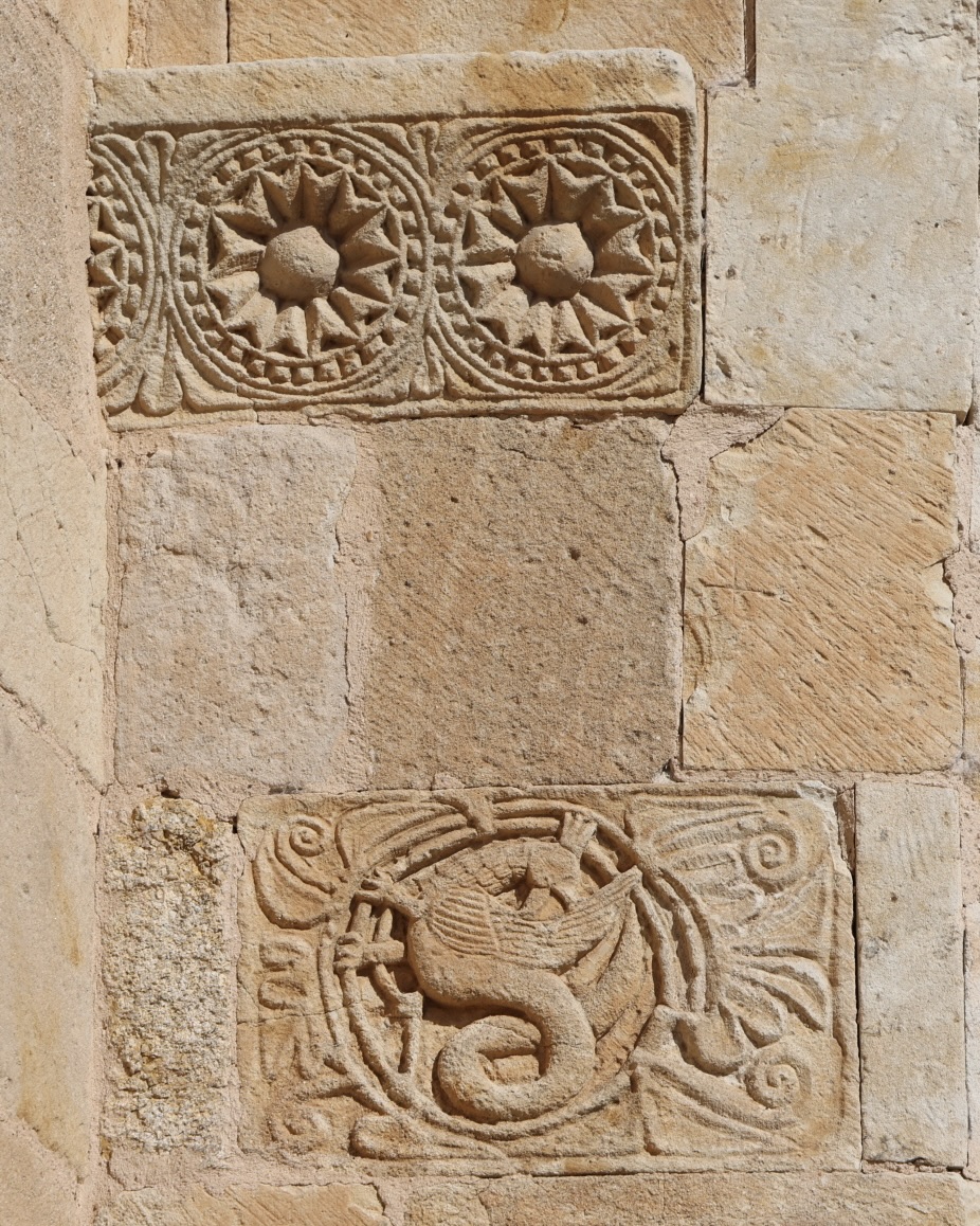 下部の帯状装飾の南端と北端には、幻想的な生き物たちが彫られています。