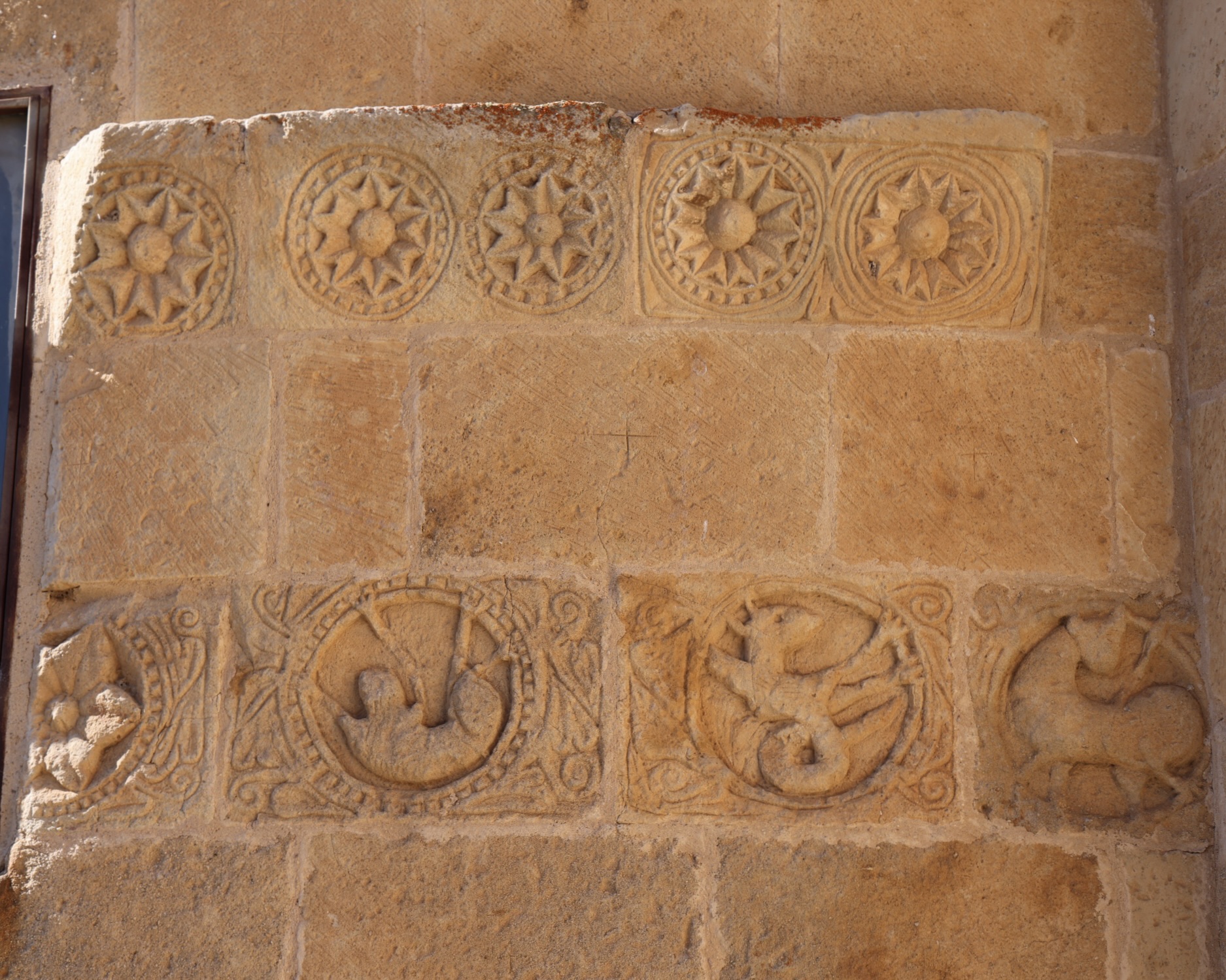 下部の帯状装飾には、6枚または8枚の花弁を持つロゼットが並んでいます。