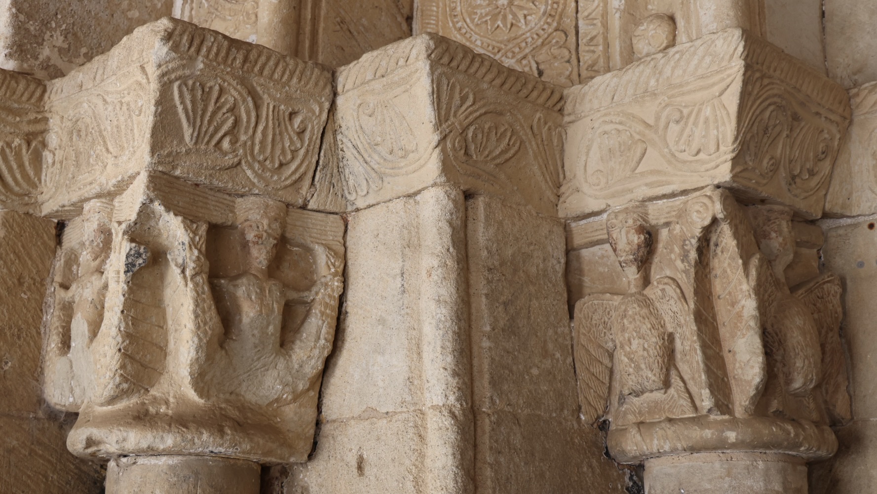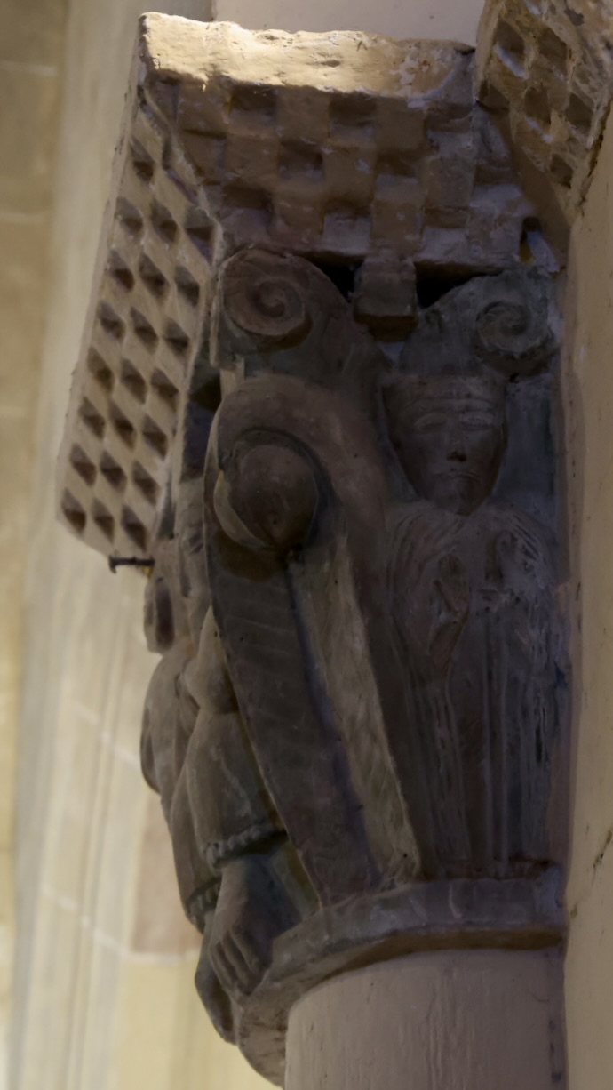 左(西)側の柱頭には、2体の二股人魚、2体のハルピュイア、が彫られていると思います。