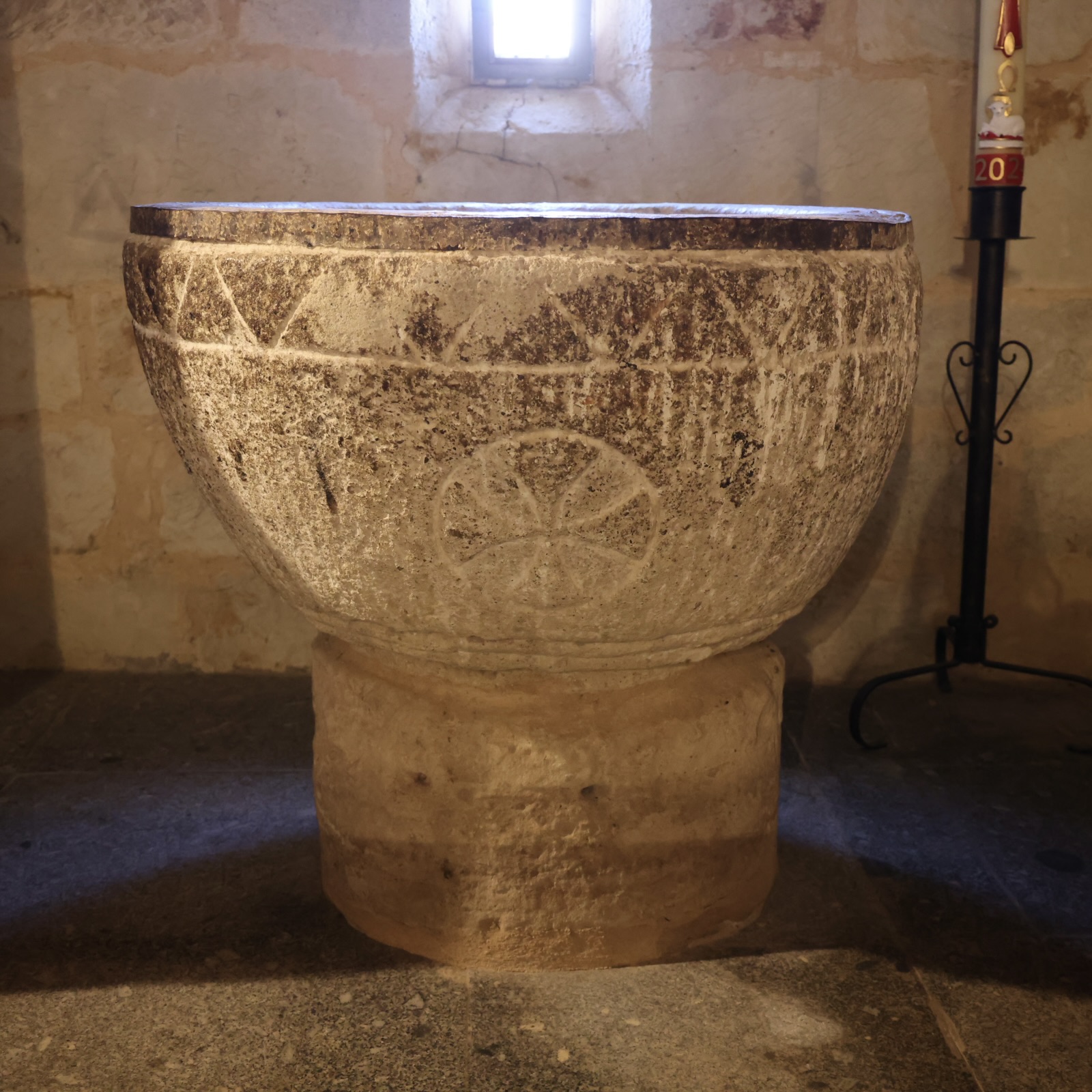 この建物の建設時期と同じ頃のものと思われる洗礼盤が、西側の壁の厚みに開けられた礼拝室に保存されている。その杯は半球形で、直径110cm、高さ53cmであり、マルタ十字が刻まれた簡素な装飾と、縁に鋸歯状の帯が施されている。