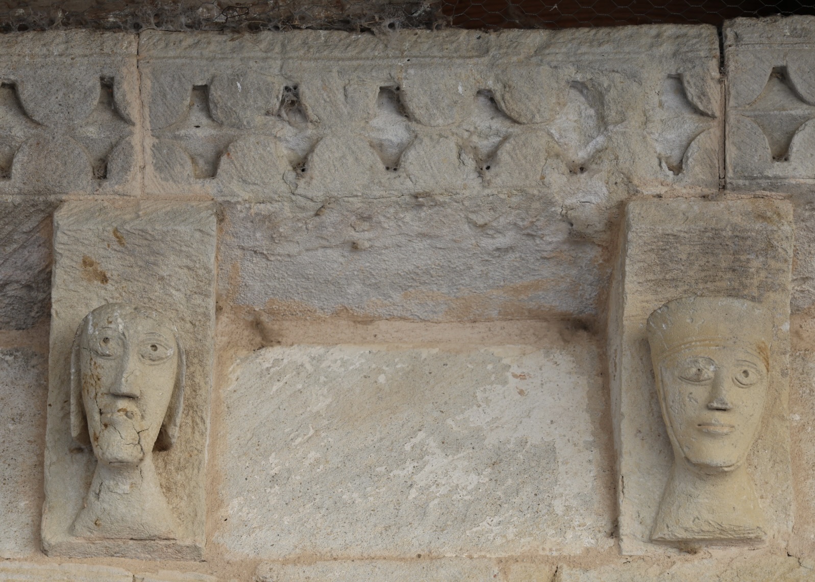 持ち送りには、大きな目の人物の胸像が並んでいます。