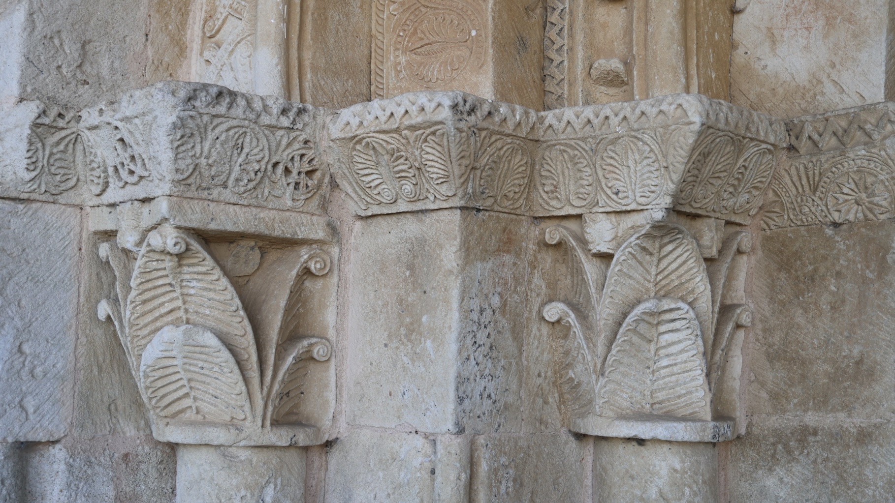 左(東)側の柱頭は、外側内側ともに、様式化された植物が彫られています。