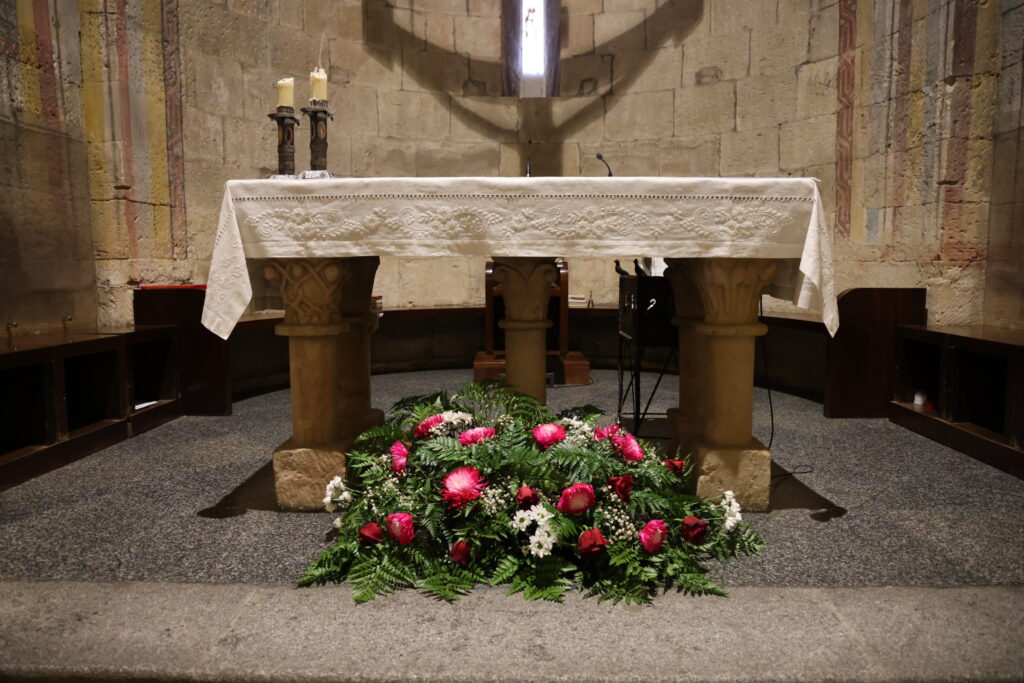 ただ、祭壇を支えている柱頭は、ロマネスク様式だと思います。