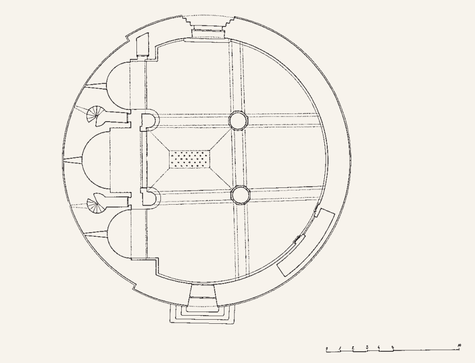 なぜ円形の平面図なのか?アルバレス・ビジャール(Álvarez Villar)はこの特異性を、当初は教区教会というよりもむしろチャプター・ハウスとして使われていたためと解釈する。その利用はサラマンカの聖職者に限定され、彼らはそこで王家の追悼式や私的な祈りを執り行っていたからである。ローマのサン・ステファノ・ロトンド教会(Basilica di Santo Stefano Rotondo)、数多くのビザンチン式洗礼堂の記憶、そして東方起源の聖人(聖マルコ)への献堂、いずれも非典型的な平面図を解釈する鍵となり得る。この平面図は、周囲に席を設置するのに理想的だった。