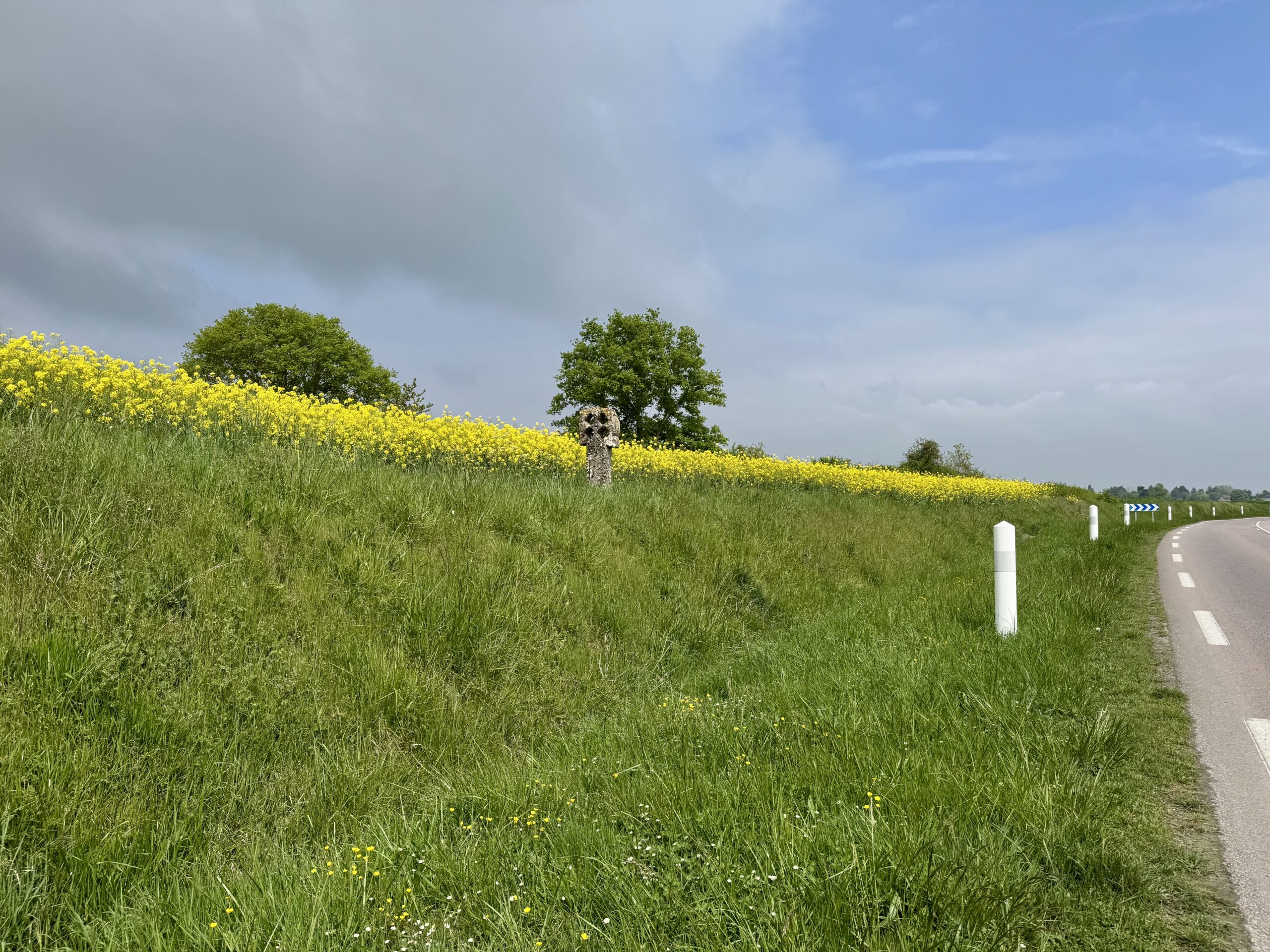 道端の野原に、オート=ノルマンディー地方で最も美しいロマネスク様式の十字架が立っています。