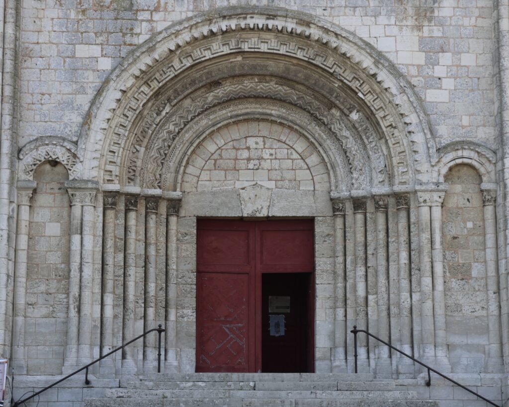 そして、西扉口の両側に印象的な盲アーチがあります。ヌーヴェル=アキテーヌ地域圏のアングモワ(Angoumois)地方やサントンジュ(Saintonge)地方のファサードを思い出します。