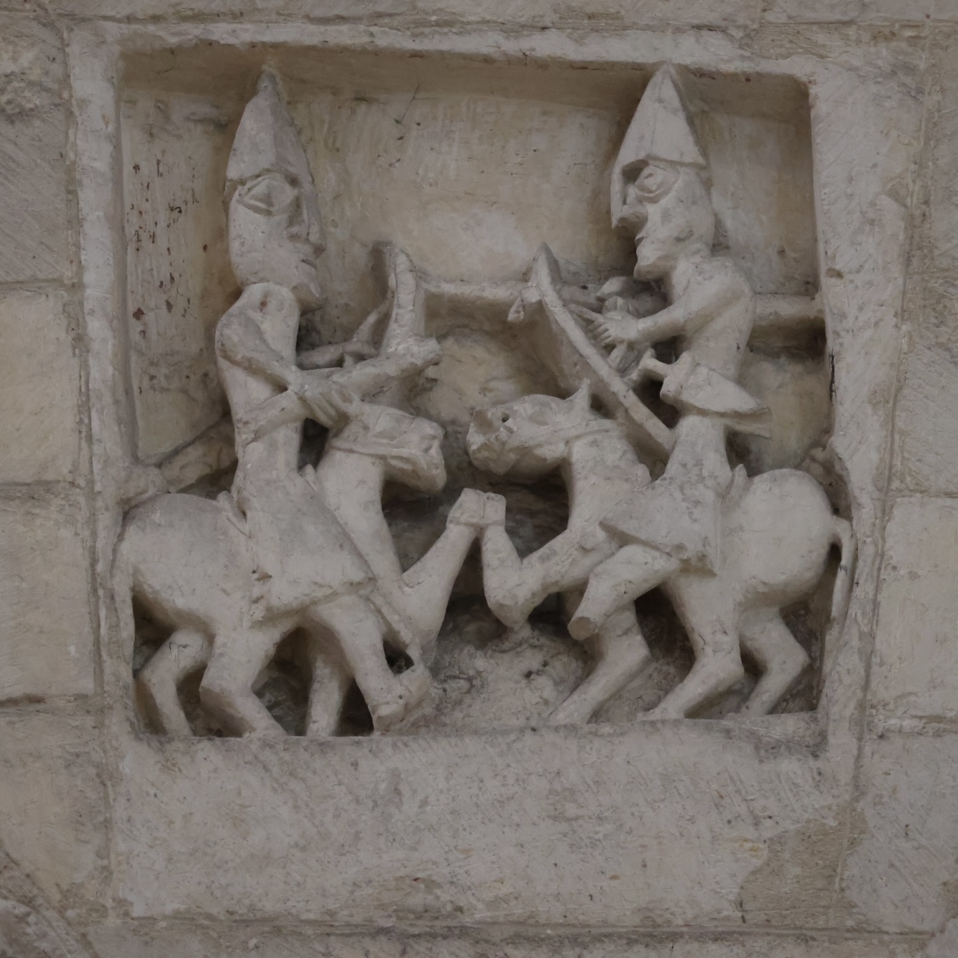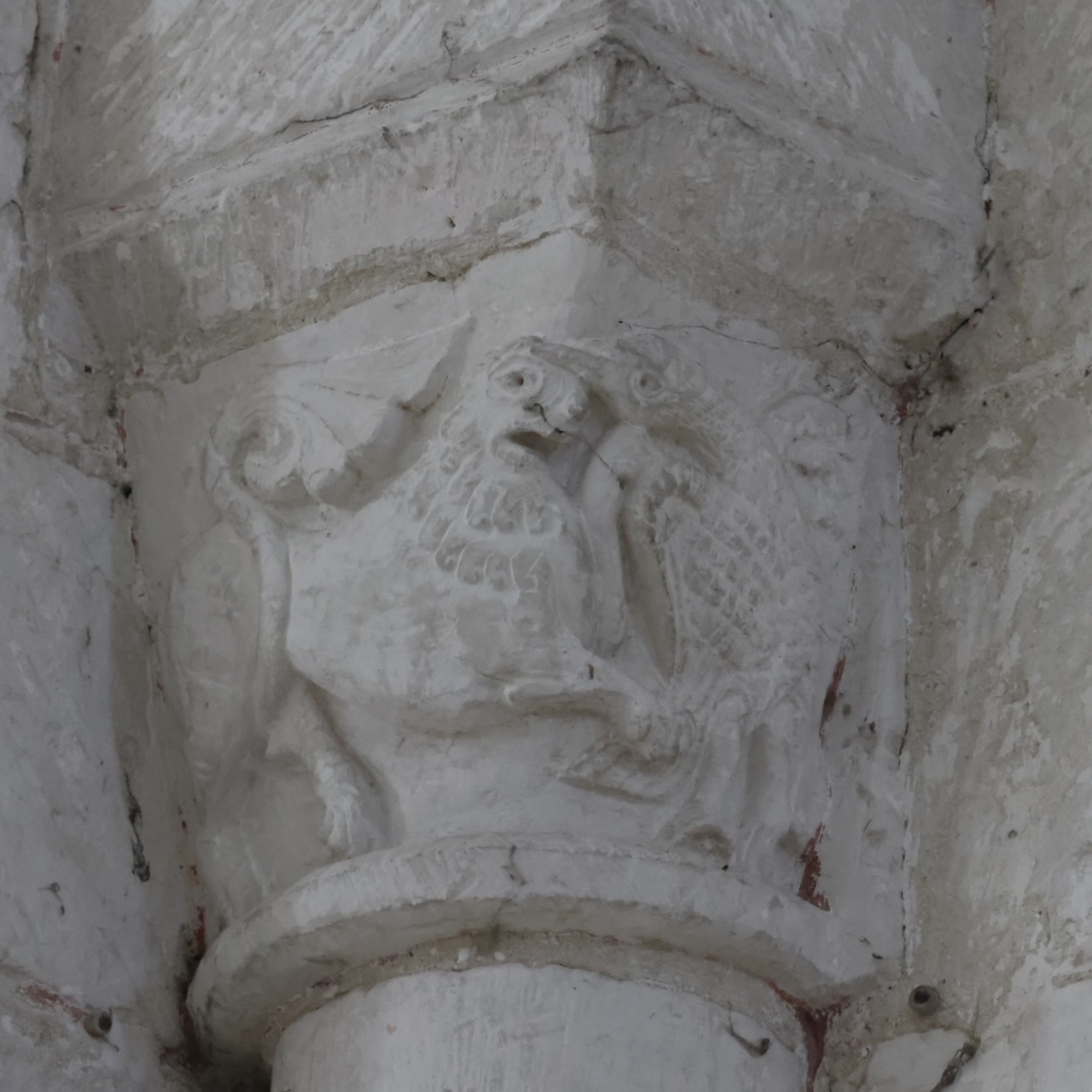 盲アーチの柱頭には、弓を引くケンタウロスやドラゴンなどの幻想的な生き物が彫られていると思います。