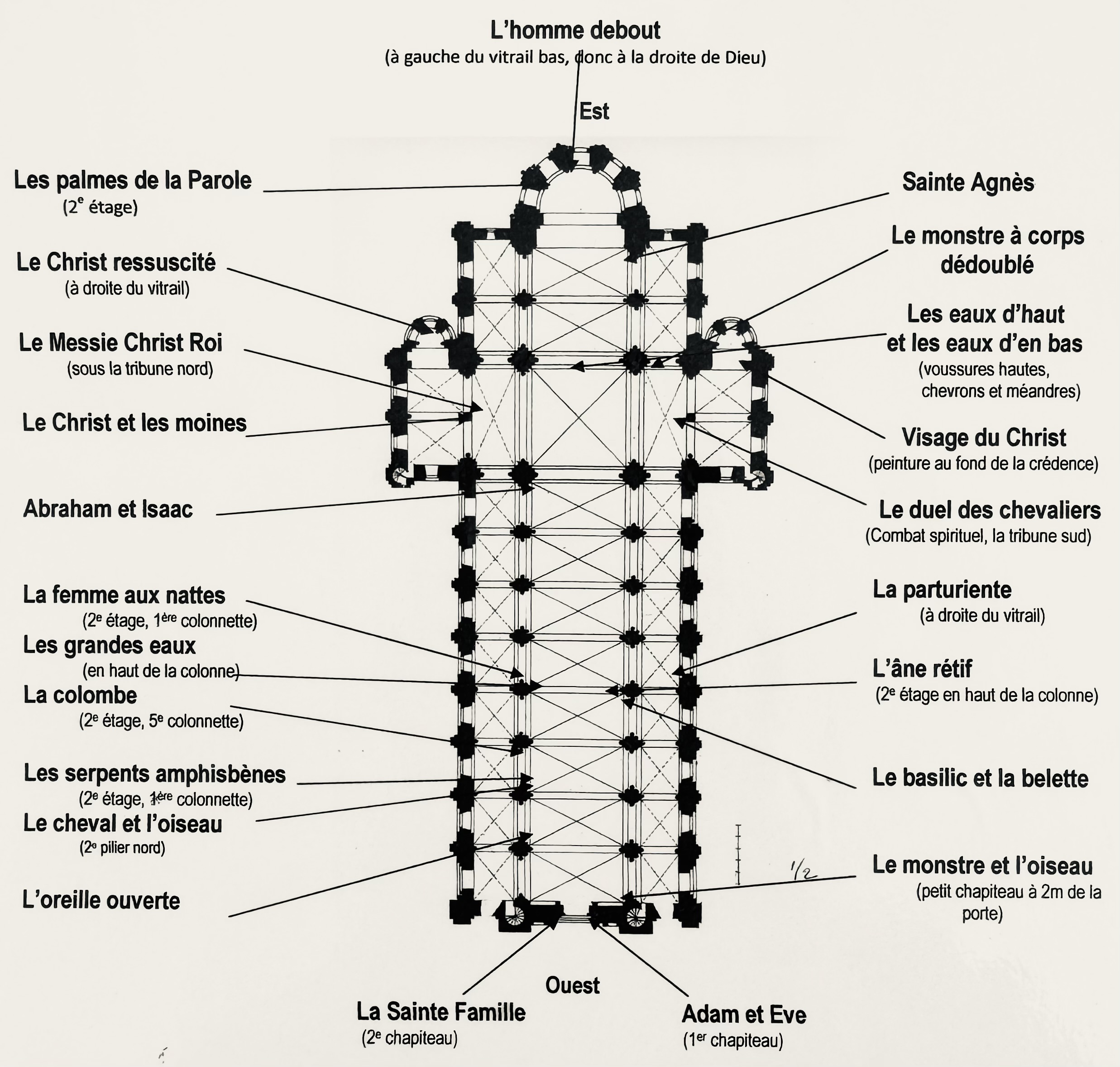 教会の中にあった案内シートによる平面図です。東が上です。
