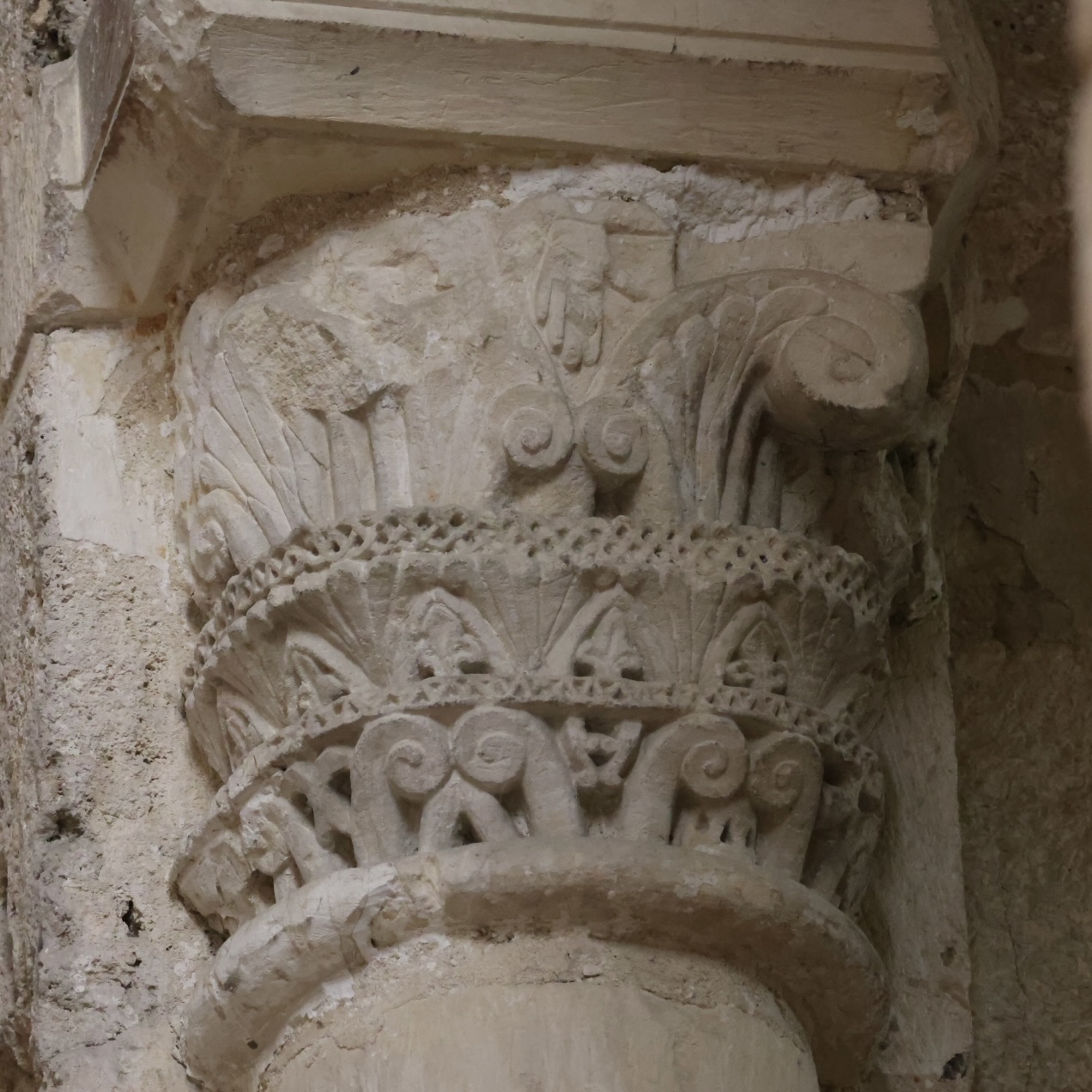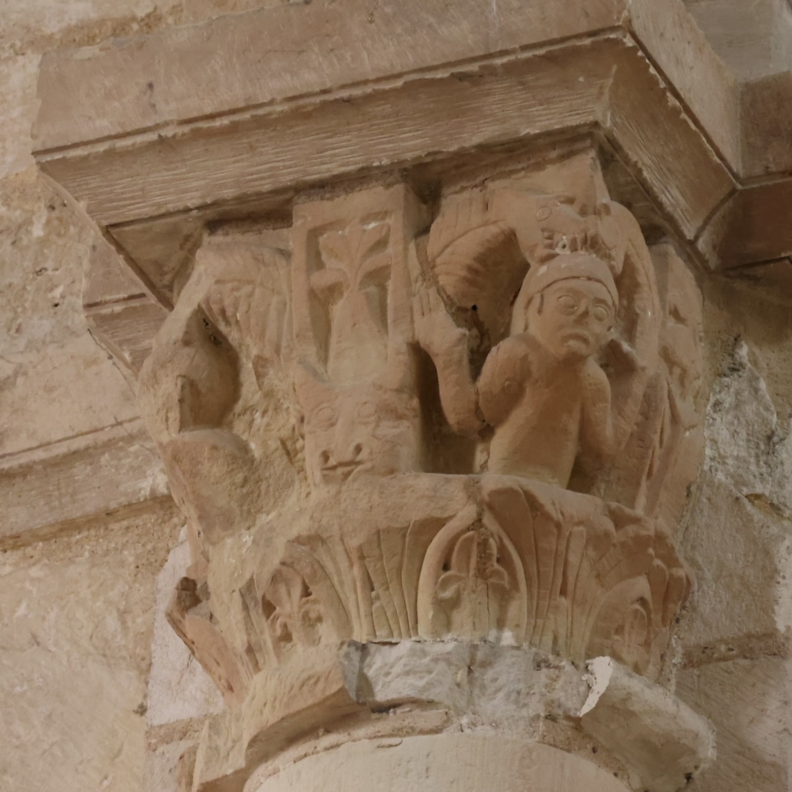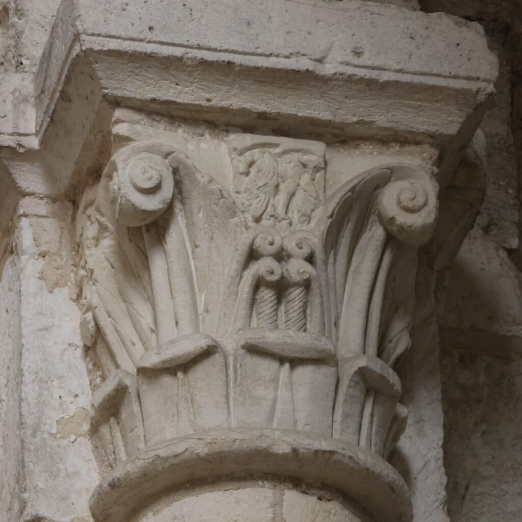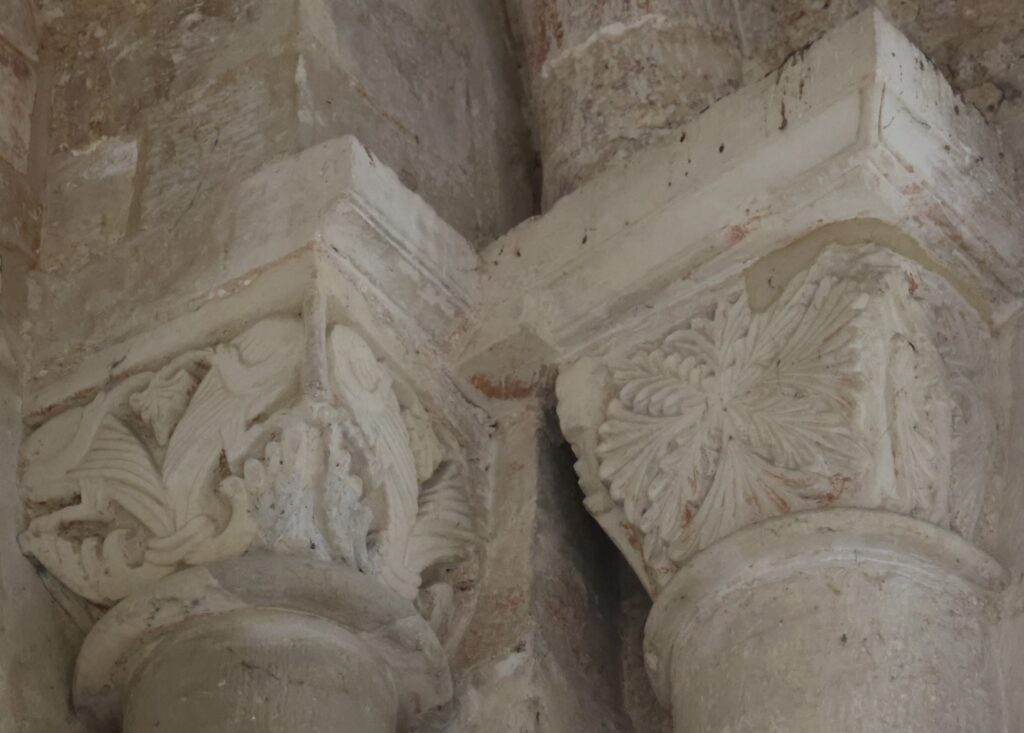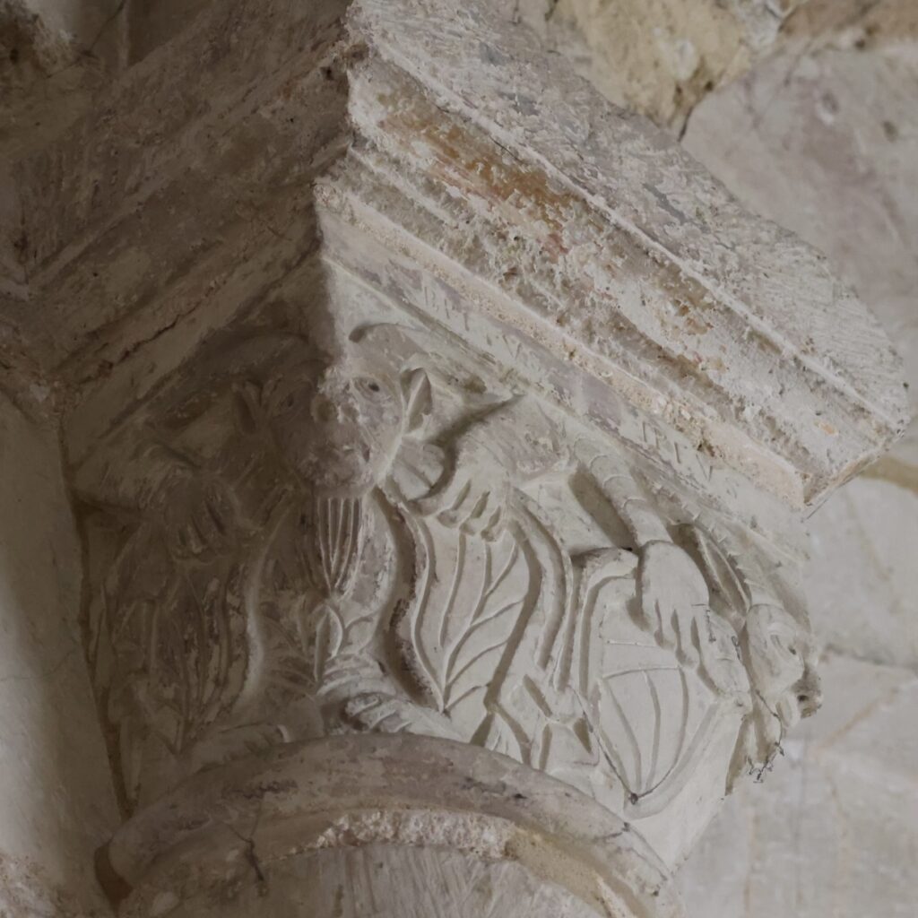 身廊の柱頭のうち、オリジナルの名残がうかがえるものを三つご紹介します。