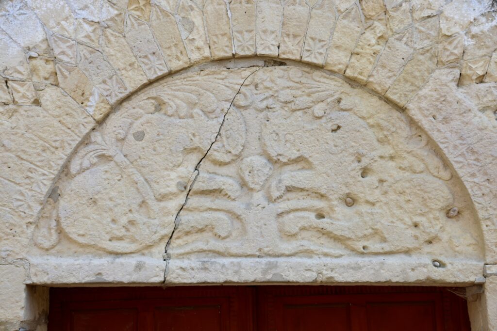 ティンパヌムには、「獅子の穴の中のダニエル」(『ダニエル書』6章)が彫られているようです。