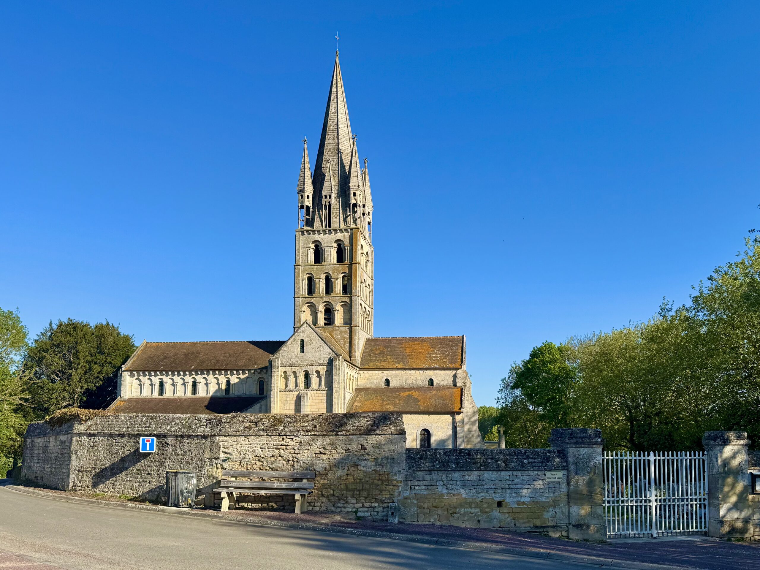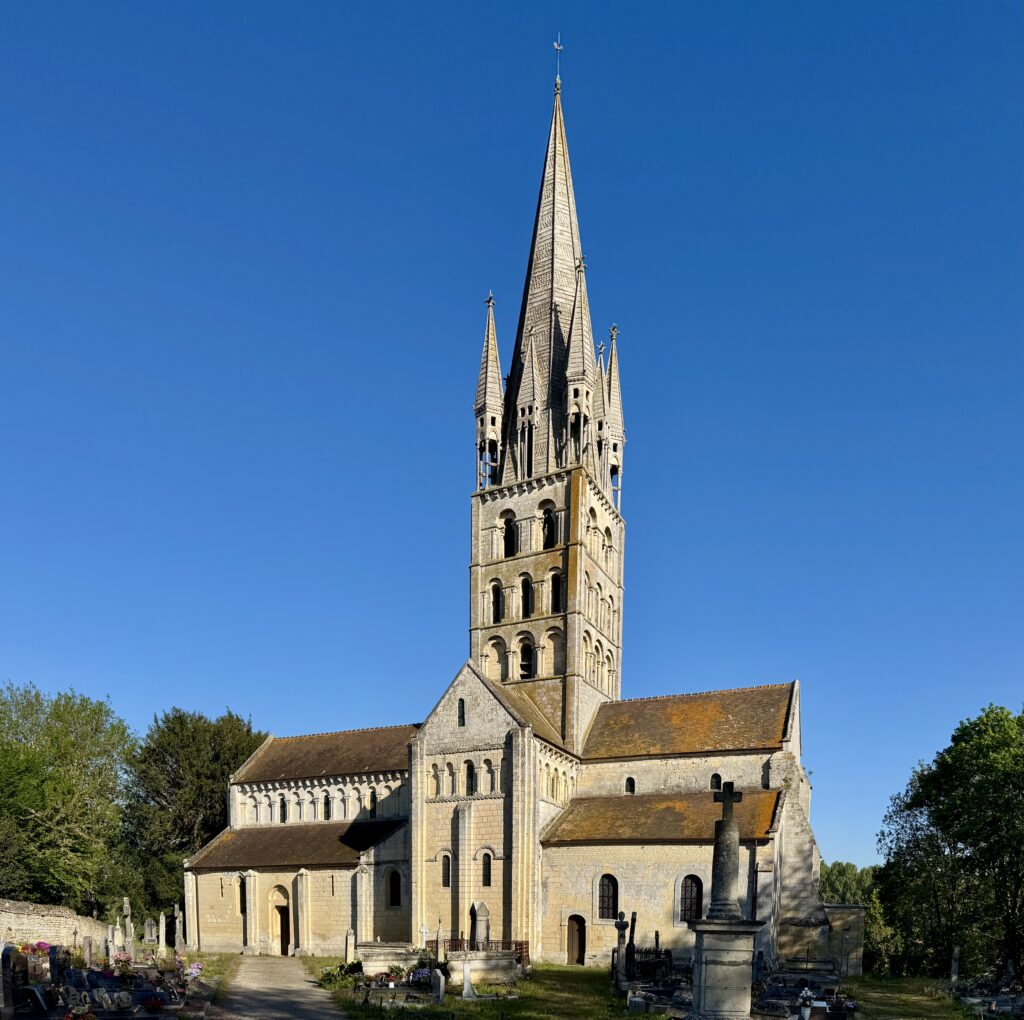 Église Saint-Sulpice de Secqueville-en-Bessin。見事なロマネスク様式の建築物です。身廊と翼廊に注目です。