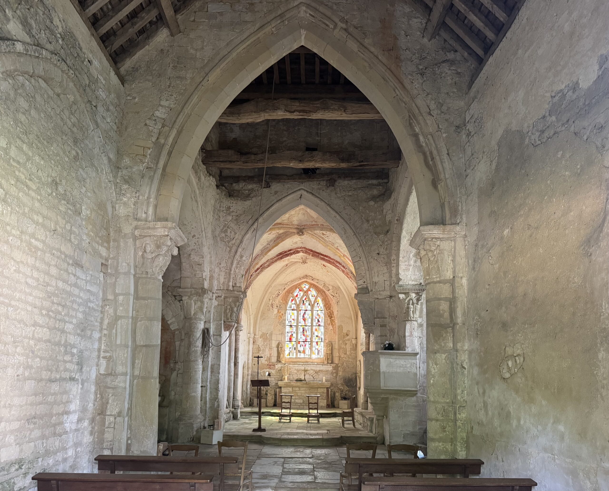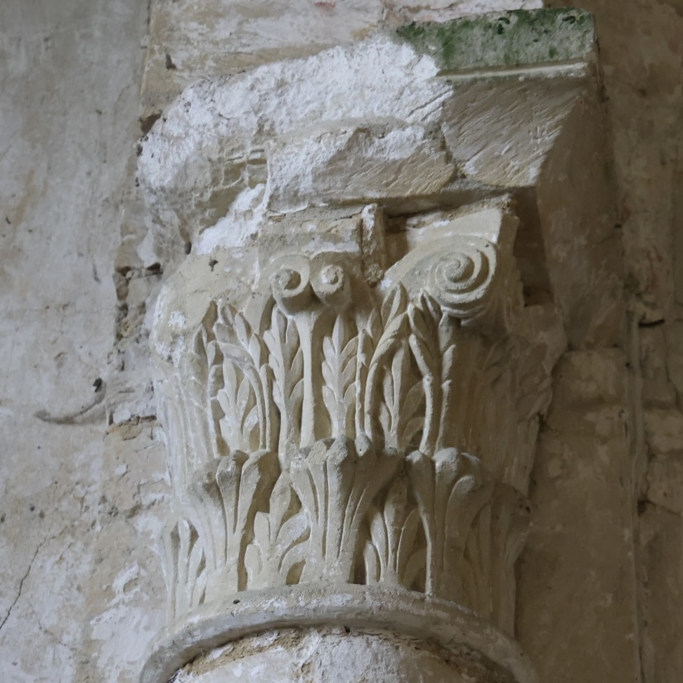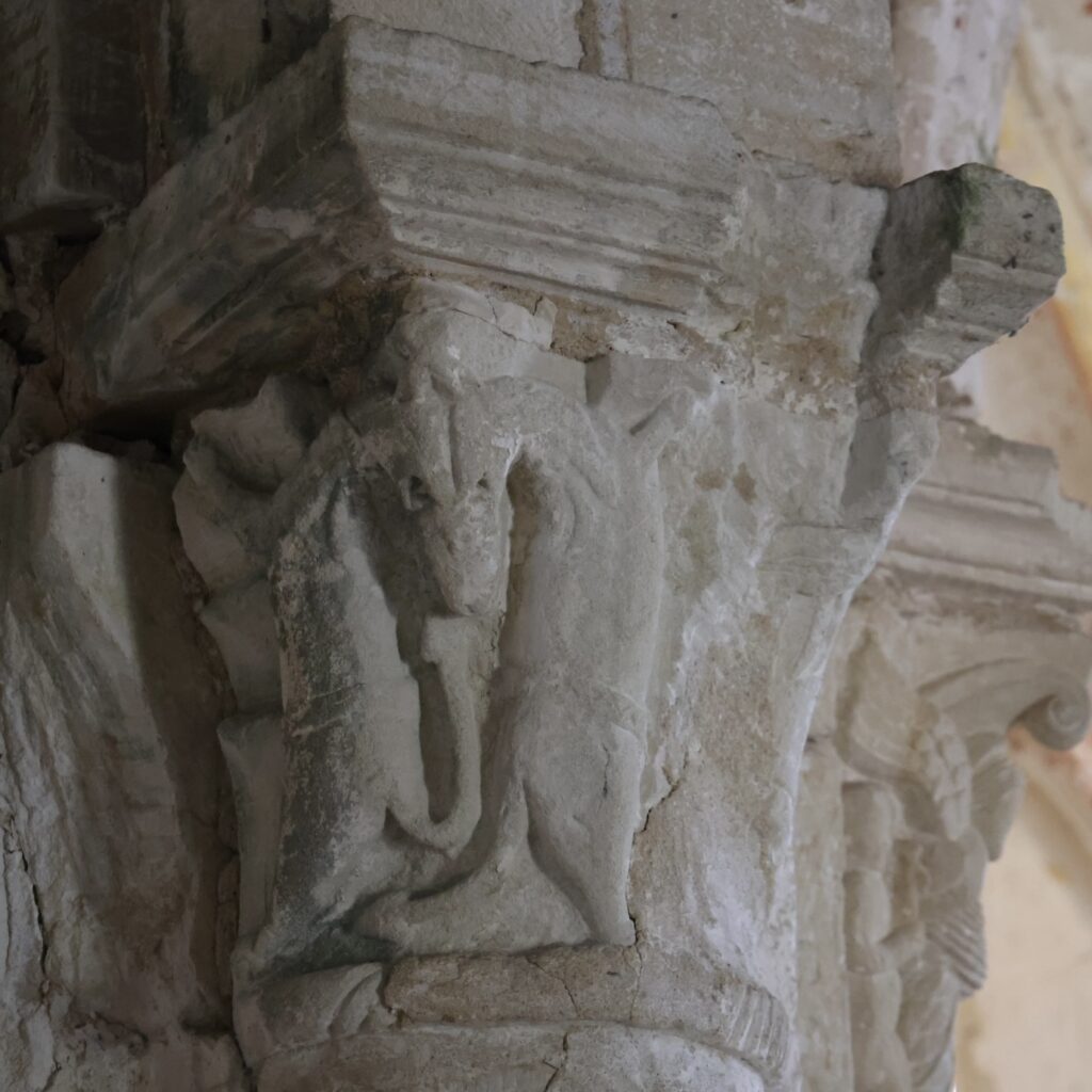 サン・ピエール・ド・ルックヴィル教会(église Saint-Pierre de Rucqueville)。交差部に残る柱頭彫刻が良いです。