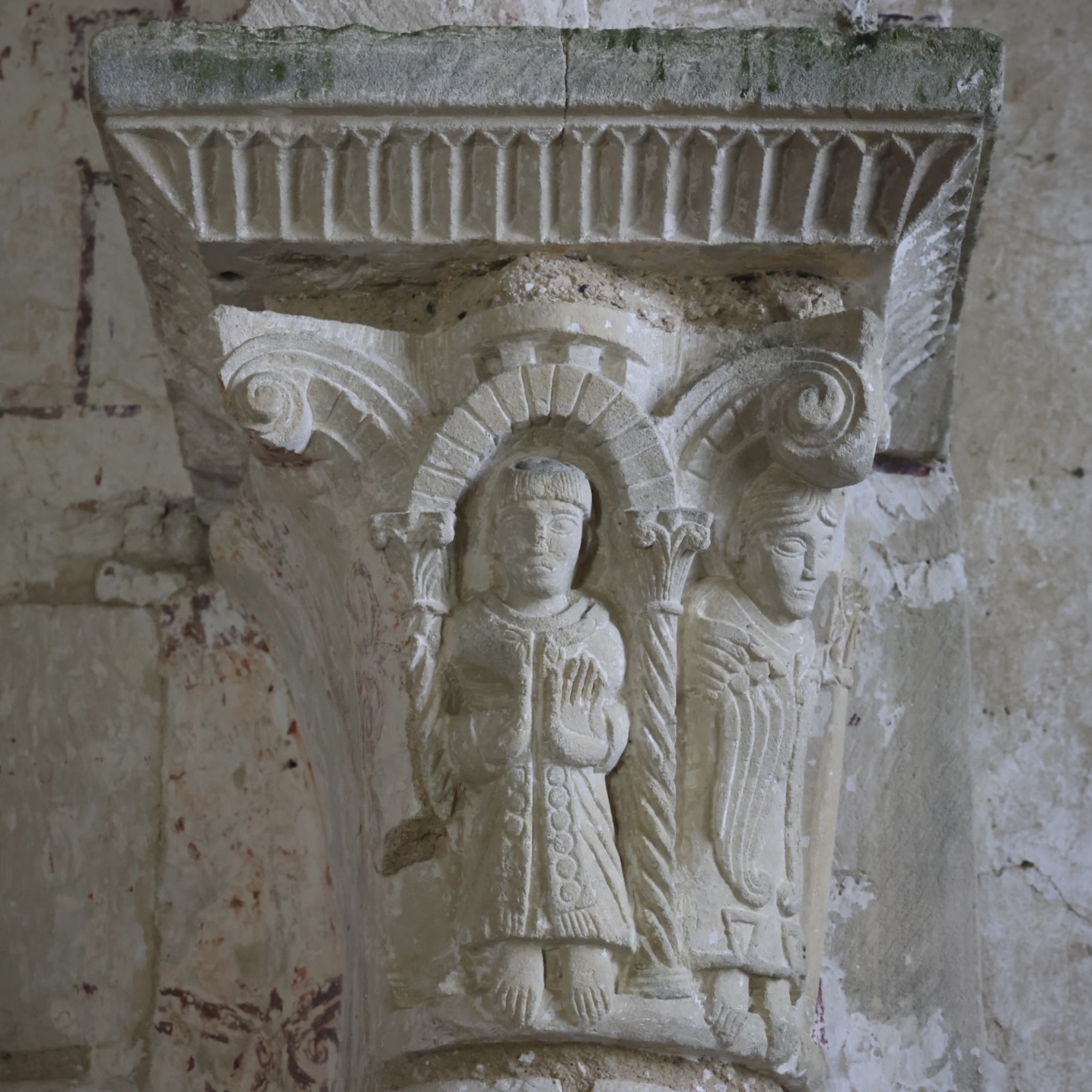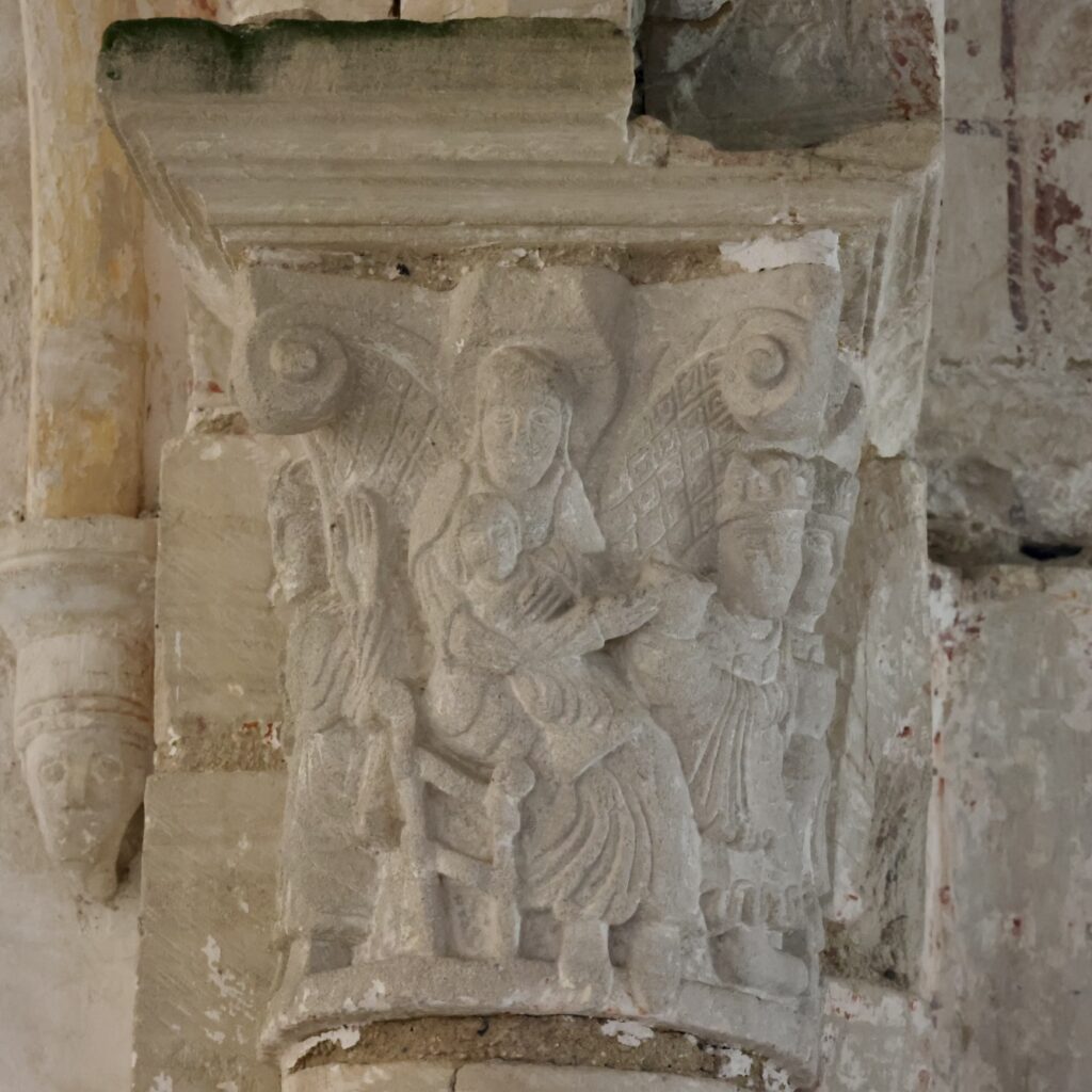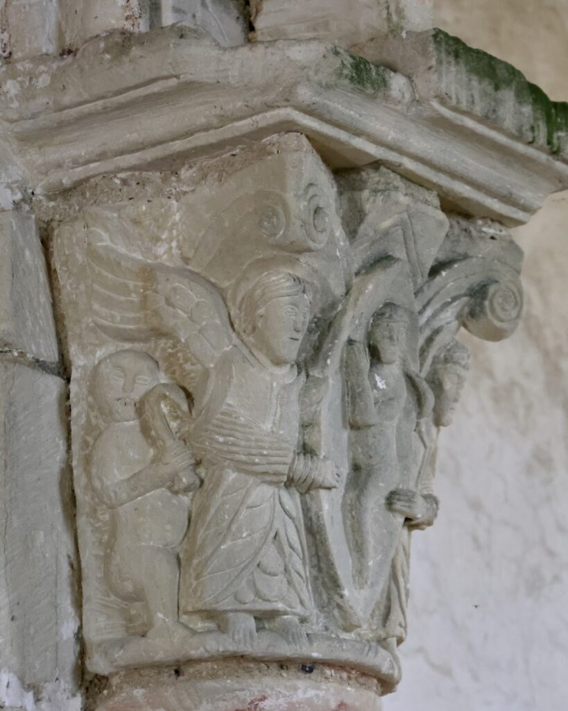 ここは、交差部に残る柱頭彫刻が良いです。